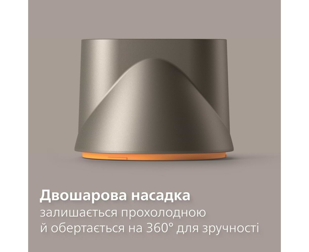 Насадка для укладки имеет два слоя, чтобы оставаться холодной, пока вы сушите волосы. Она эргономична и вращается на 360°, что позволяет найти идеальный угол для укладки.