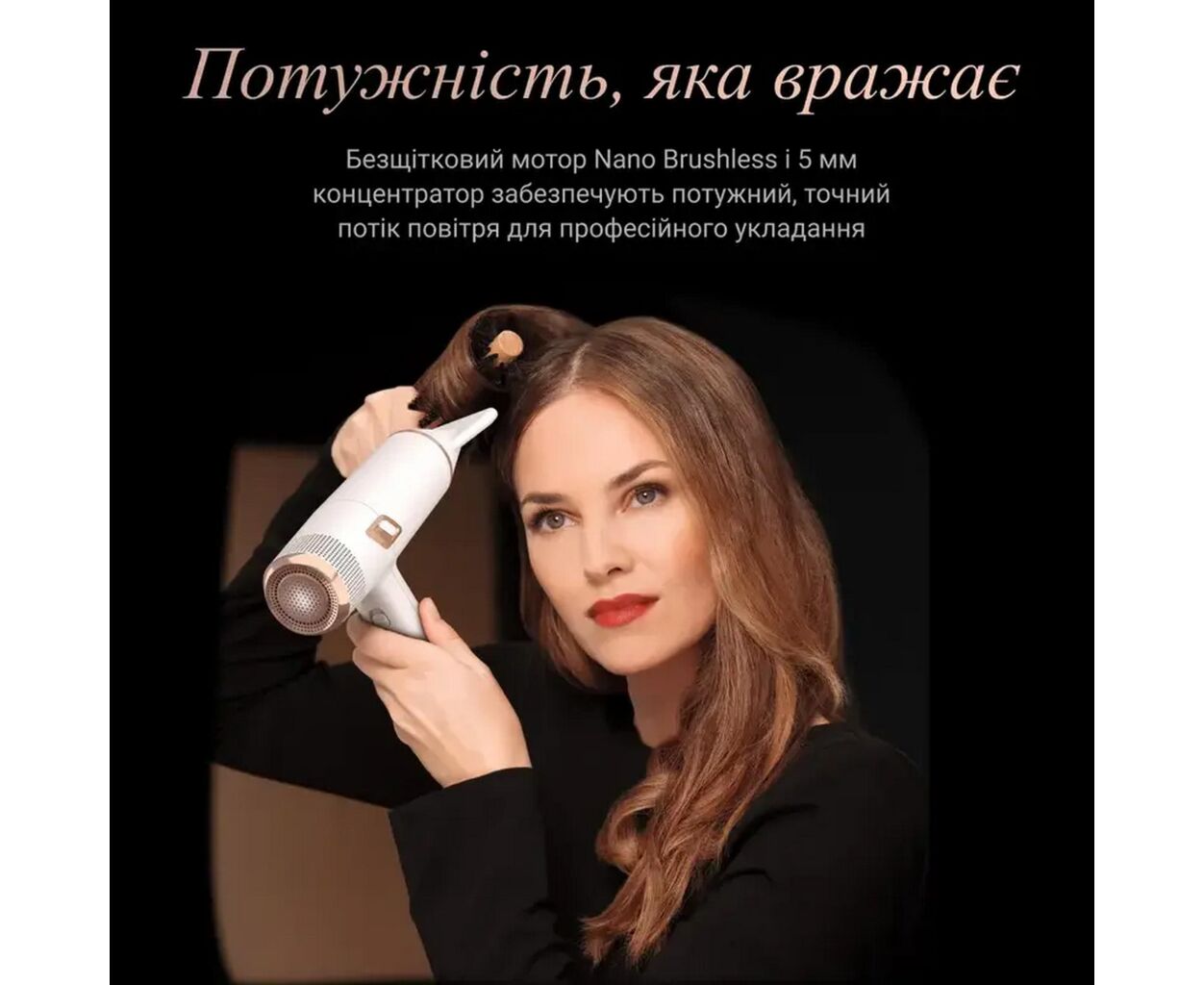Бесщеточный мотор Nano Brushless в сочетании с ультратонким 5 мм концентратором обеспечивает мощный и точный поток воздуха для профессиональной укладки и идеального стиля каждый день.