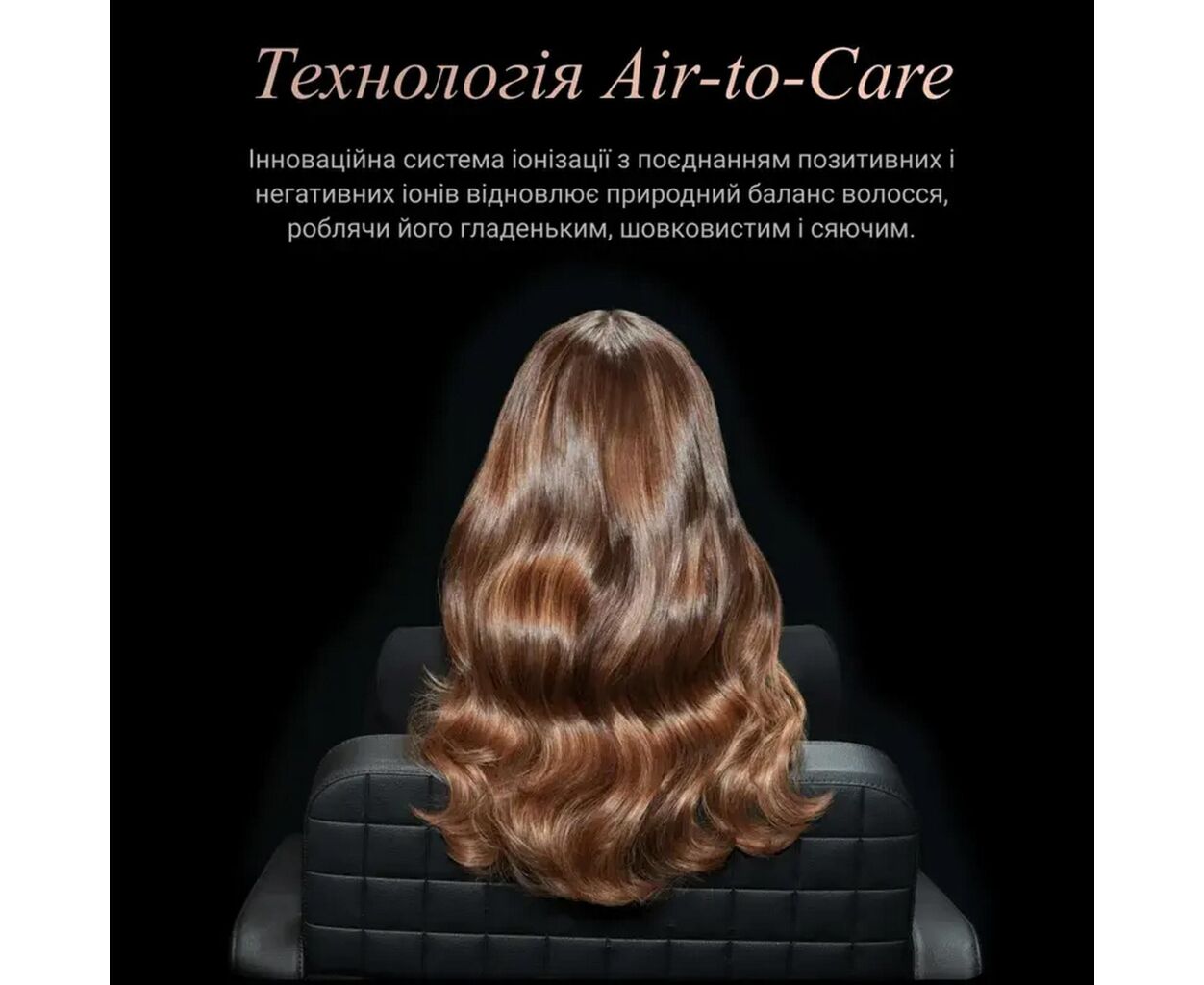 Инновационная система ионизации с сочетанием положительных и отрицательных ионов восстанавливает естественный баланс волос, делая его гладкими, шелковистыми и сияющими.