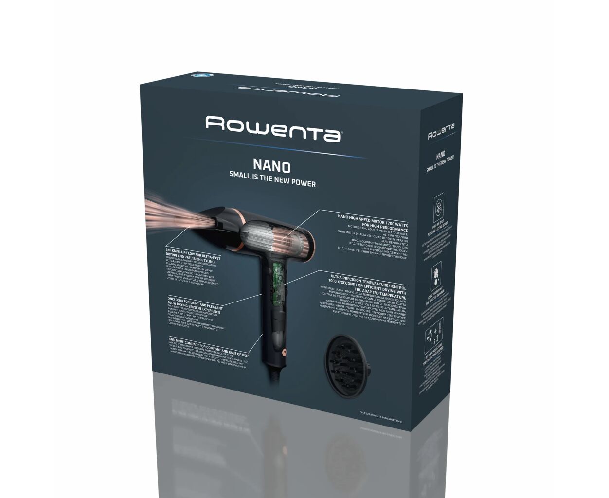 Мощный и компактный фен Rowenta Maestria Nano подходит для быстрой и точной сушки волос.
