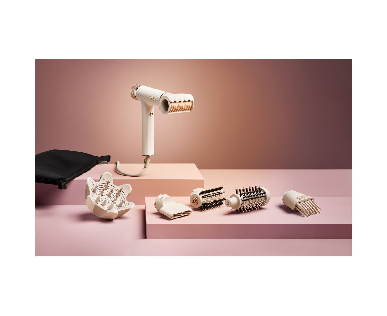 Разнообразие насадок обеспечивает широкий выбор возможностей для укладки. Используя диффузор, вы создадите четкие и объемные локоны даже на кудрявых волосах. Концентратор пригодится для точного направления потока воздуха, что идеально подходит для создания устойчивой укладки. Кроме того, круглая щетка позволит работать с челкой и кончиками, а насадка для глянцевого финиша добавит блеска, подчеркивая природную красоту ваших волос. Щетка для укладки поможет достичь гладкости и объема на густых волосах.