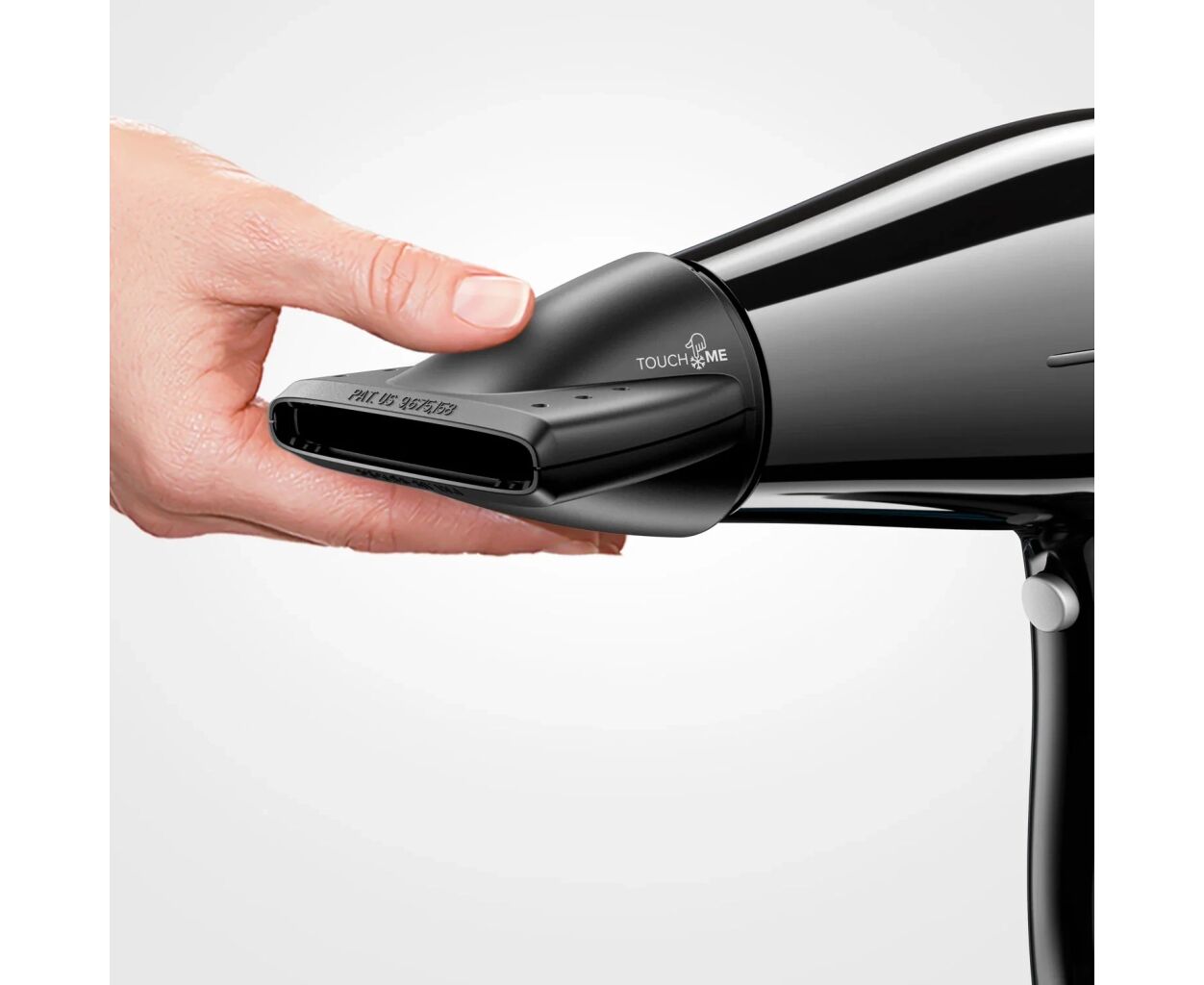 Этот фен выделяется минимальным уровнем шума благодаря технологии eQ, что повышает комфорт при использовании. Мощный 1800 Вт мотор обеспечивает быстрое сушение, экономя ваше время. Благодаря технологии RC (Rotocord), кабель не скручивается, что уменьшает риск повреждения и продлевает срок службы прибора.