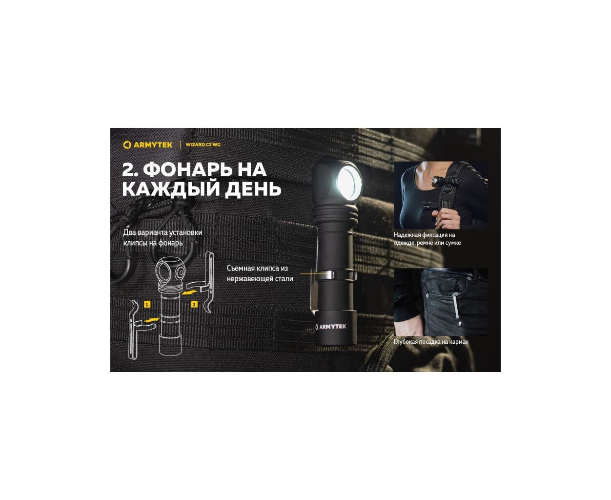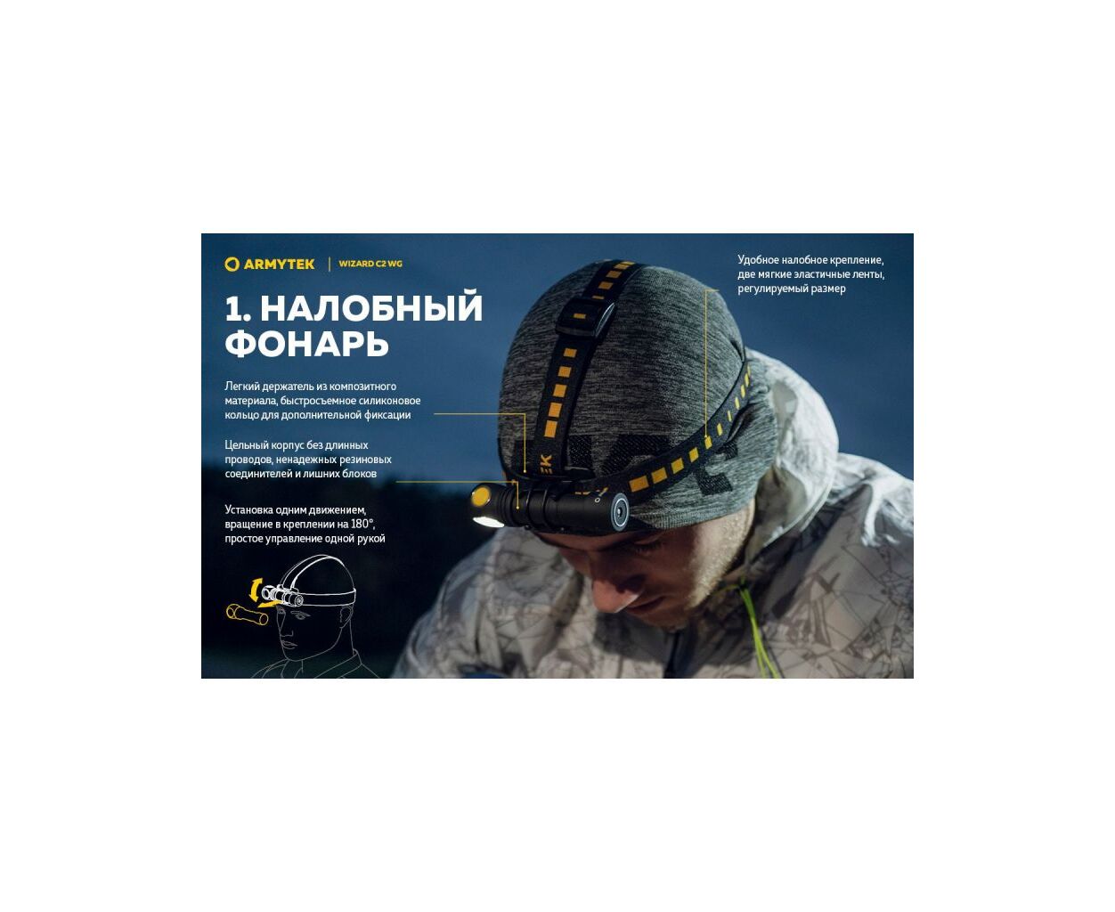 Описание Фонарь Armytek Wizard C2 WG Magnet USB Warm (F09201W)