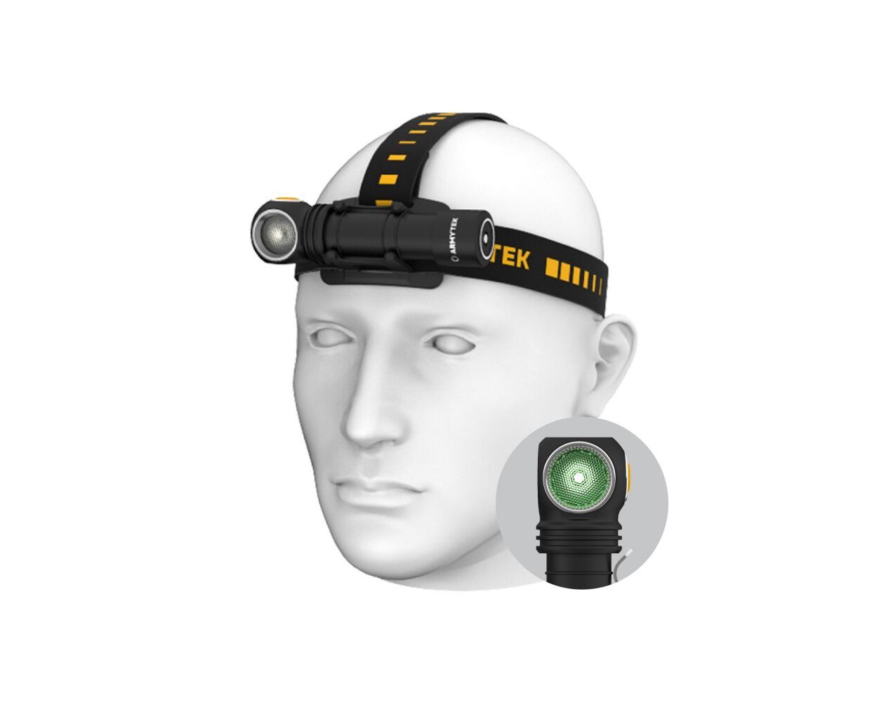 - Универсальные режимы: пять настроек яркости для каждого цвета света, легко управляемые с помощью одной кнопки. Переключайтесь между белым и зеленым светом двойным щелчком мыши и переключайтесь между режимами, нажав и удерживая.