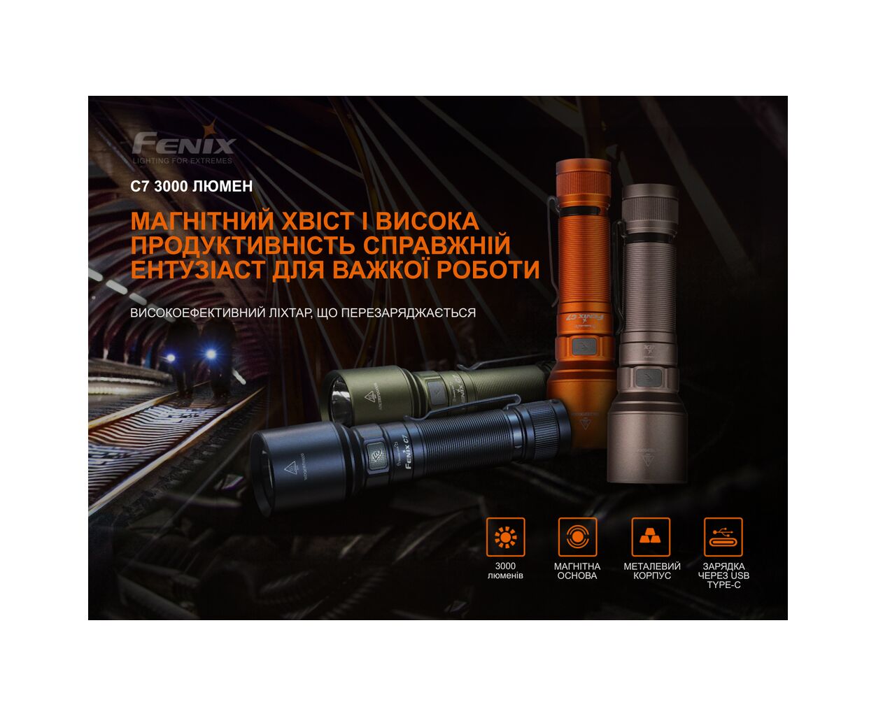 Описание Фонарь Fenix C7 зелений (C7green)