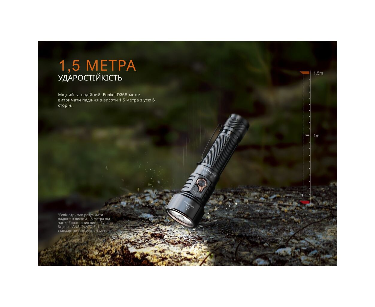 Fenix ​​LD36R питается от  наемного аккумулятора Fenix  ​​на 6000 мАч (есть в комплекте). Интеллектуальная защита не позволяет ломать электронику при установке батареи неправильной стороной.