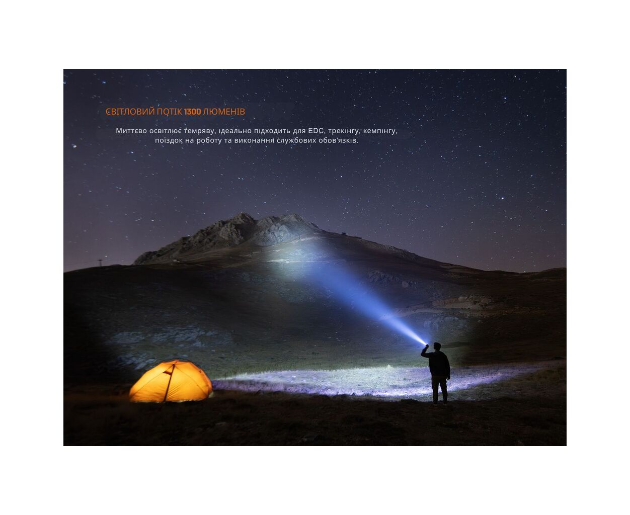Тип - ручной, источник света - Luminus SFT25R, дальность светового потока - 354 м, аккумулятор, яркость - 1300 люмен, элементы питания - 18350, вес - 102.3 г