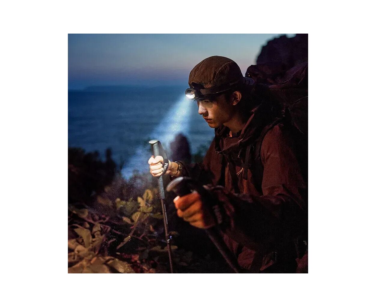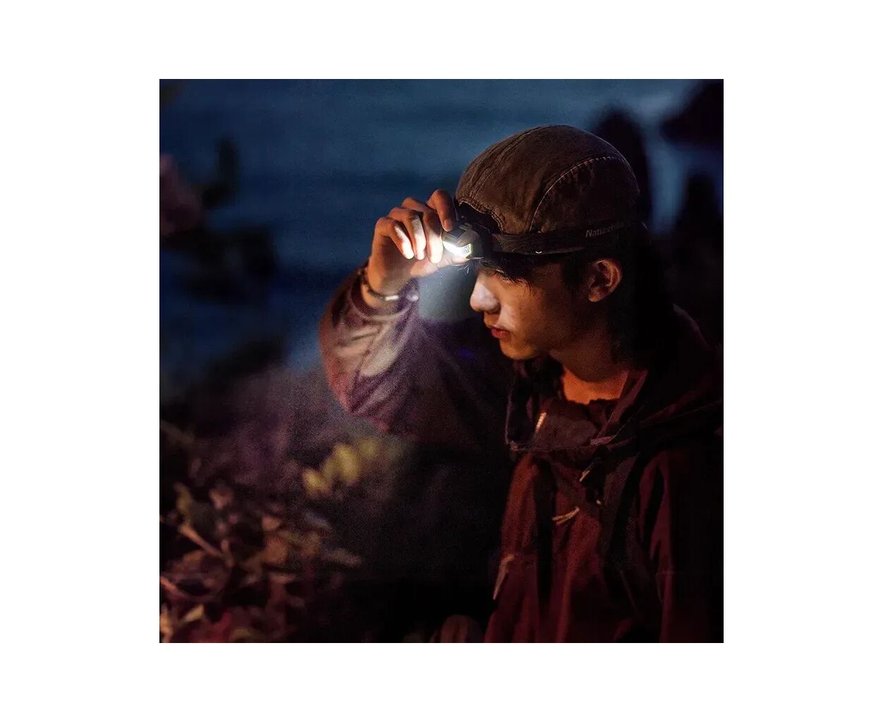 В налобный фонарь Naturehike CNK2300DQ020 интегрированы три светодиода: один белый 3535 и пара красных, что повышает функциональность модели и позволяет использовать ее в разных ситуациях. На максимальной мощности яркость белого луча достигает 210 люмен, которых достаточно для освещения дистанции до 70 метров. Красный свет не сбивает ночное зрение, не привлекает насекомых и может применяться в качестве ночника в полевом лагере. Ширина генерируемого луча составляет 70°, позволяя одновременно осветить большое пространство. Угол освещения можно регулировать на 60° наклоном корпуса, который прочно фиксируется в заданном положении.