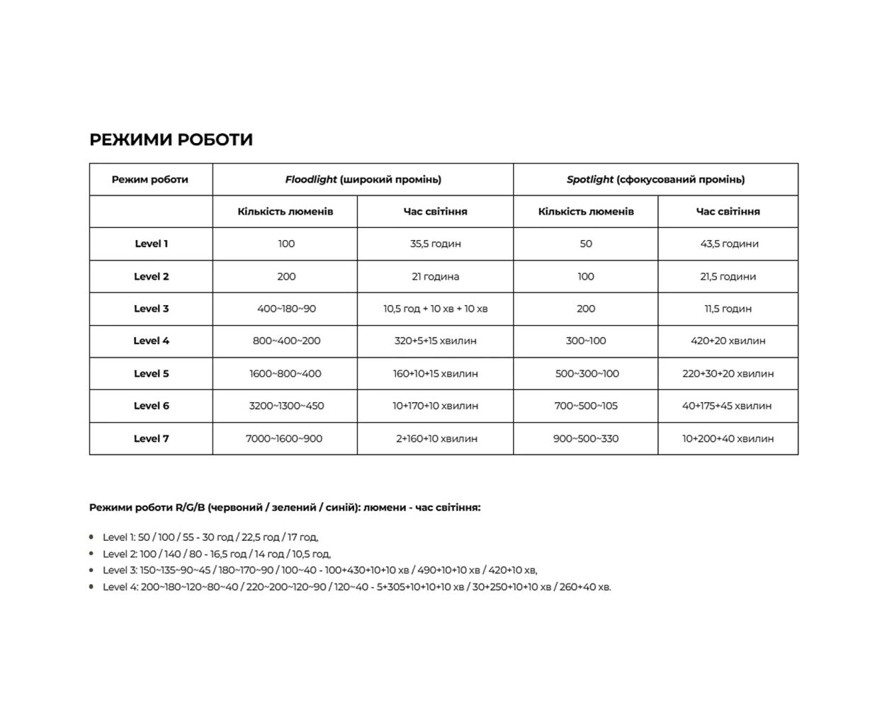 Количество режимов яркости