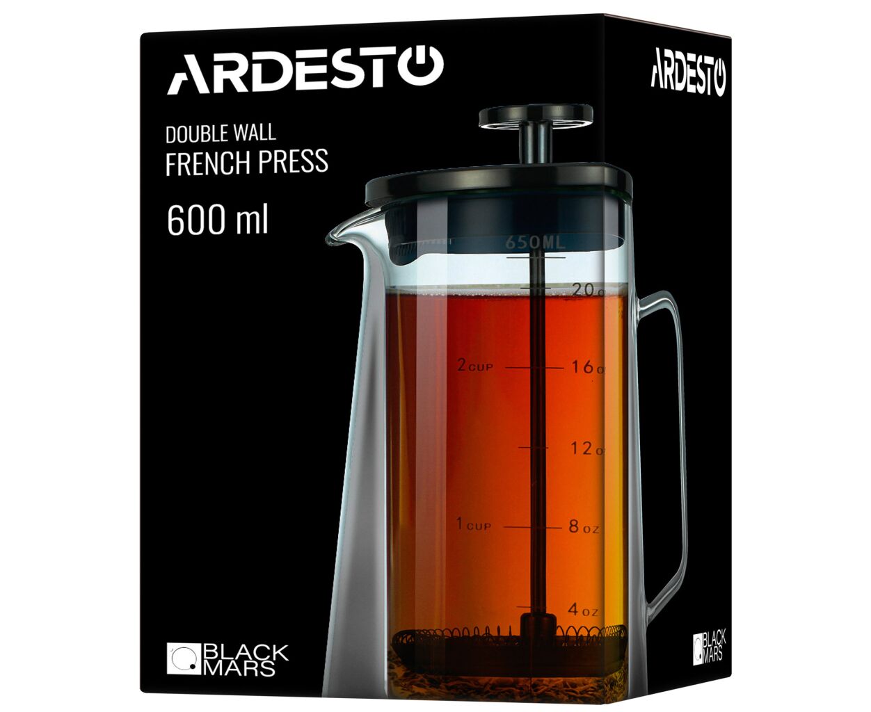 Френч-пресс Ardesto Black Mars з подвійними стінками 650 мл (AR1906DWB)