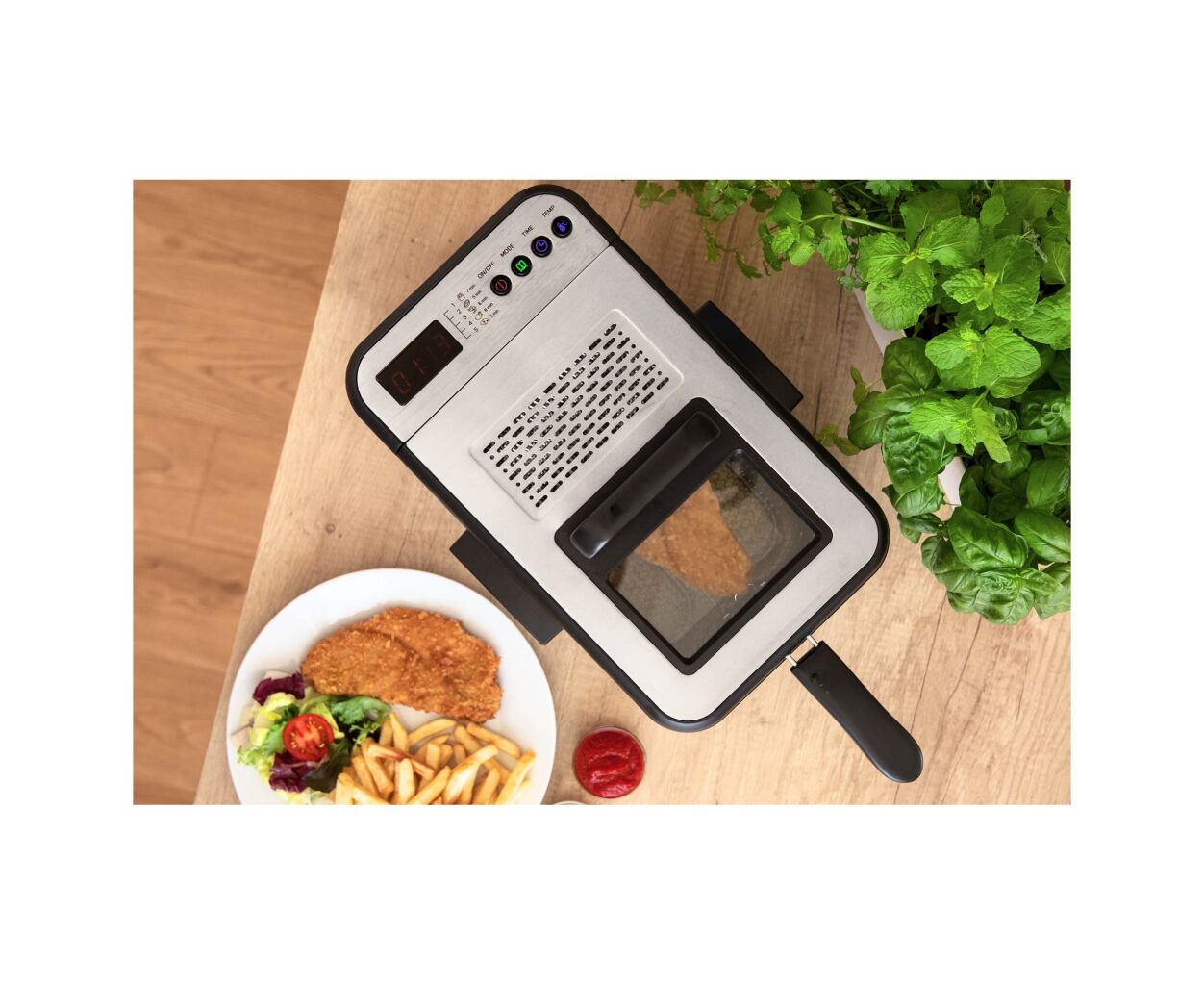 • Съёмная рукоятка корзины фритюрницы для простоты хранения и очистки