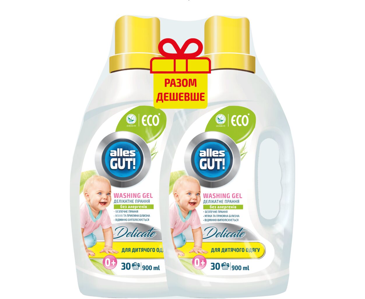 Характеристики Гель для стирки Alles GUT! Eco Для детских вещей 2 х 900 мл (4820189880639)