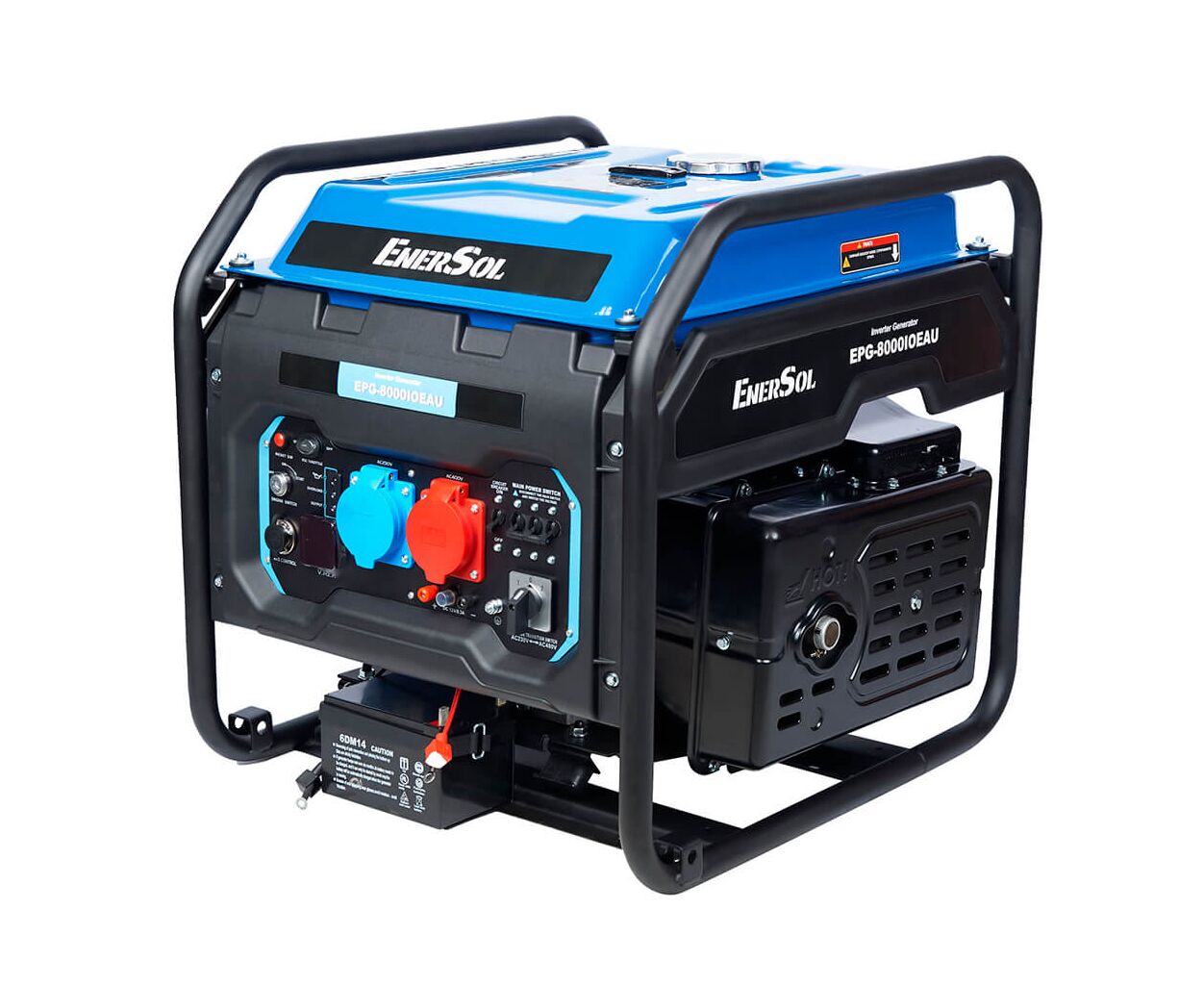 EnerSol EPG-8000IOEAU - компактный бензиновый инверторный генератор для энергоснабжения при перебоях или отключении электроэнергии. Подходит для 1-фазного и 3-фазного подключения. Благодаря небольшим размерам генератор можно удобно транспортировать по участку.