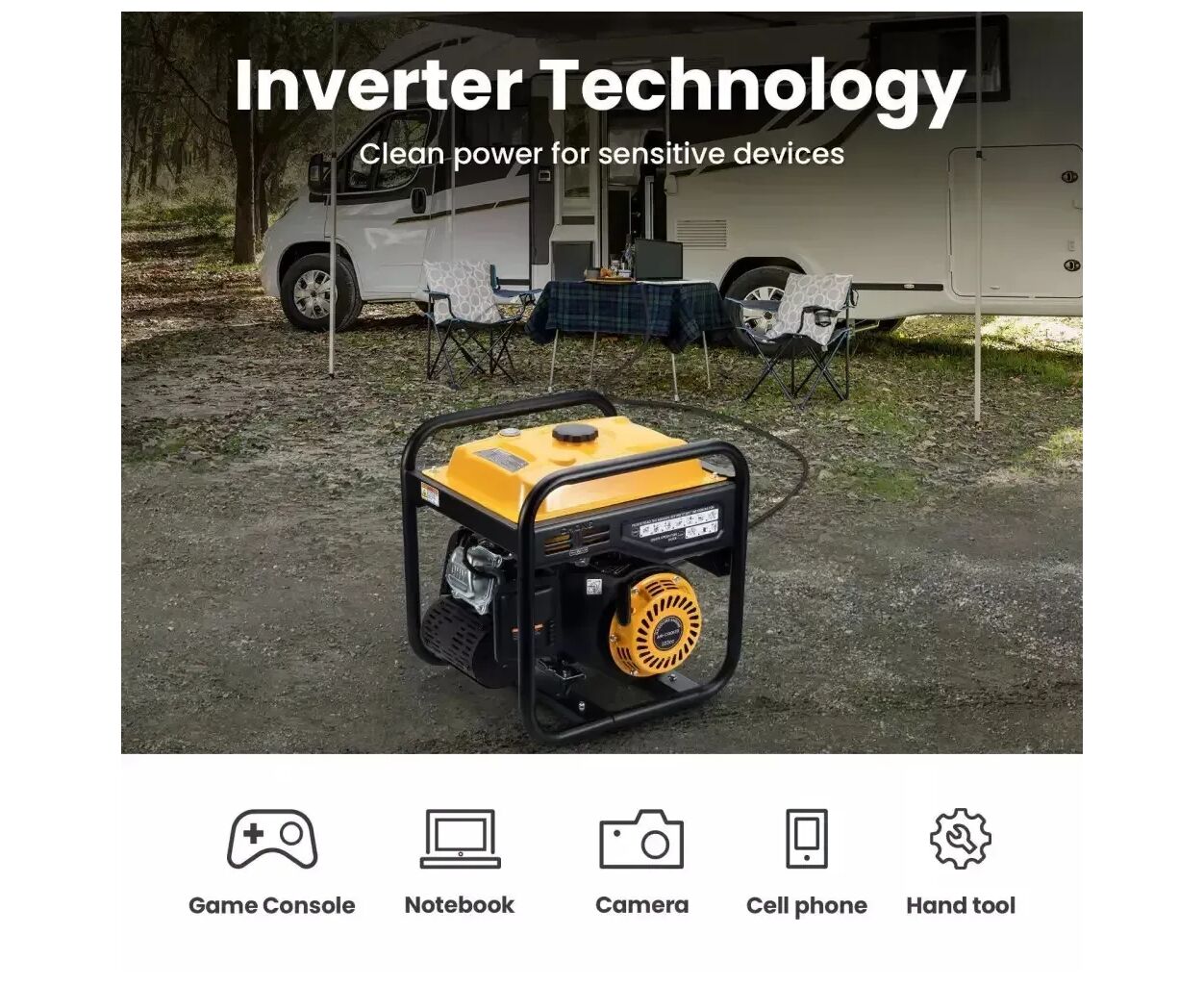 бензиновые, инверторный, 3.2 кВт, 1 x 12В (8.3A), 230 В, ручная, 7.5 л, 1.3 л/час, однофазный, 4-х тактный, IP 23M, 26 кг
