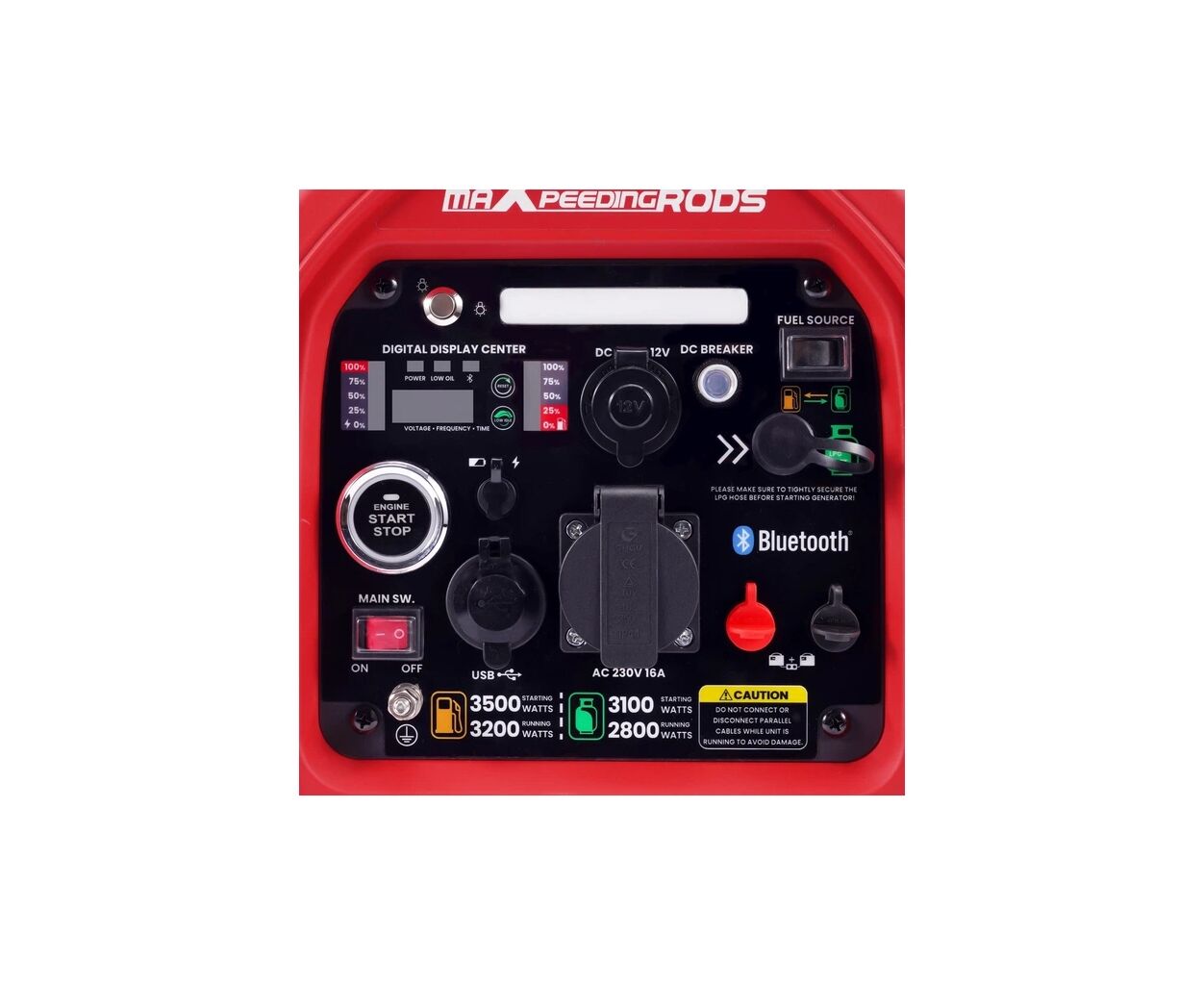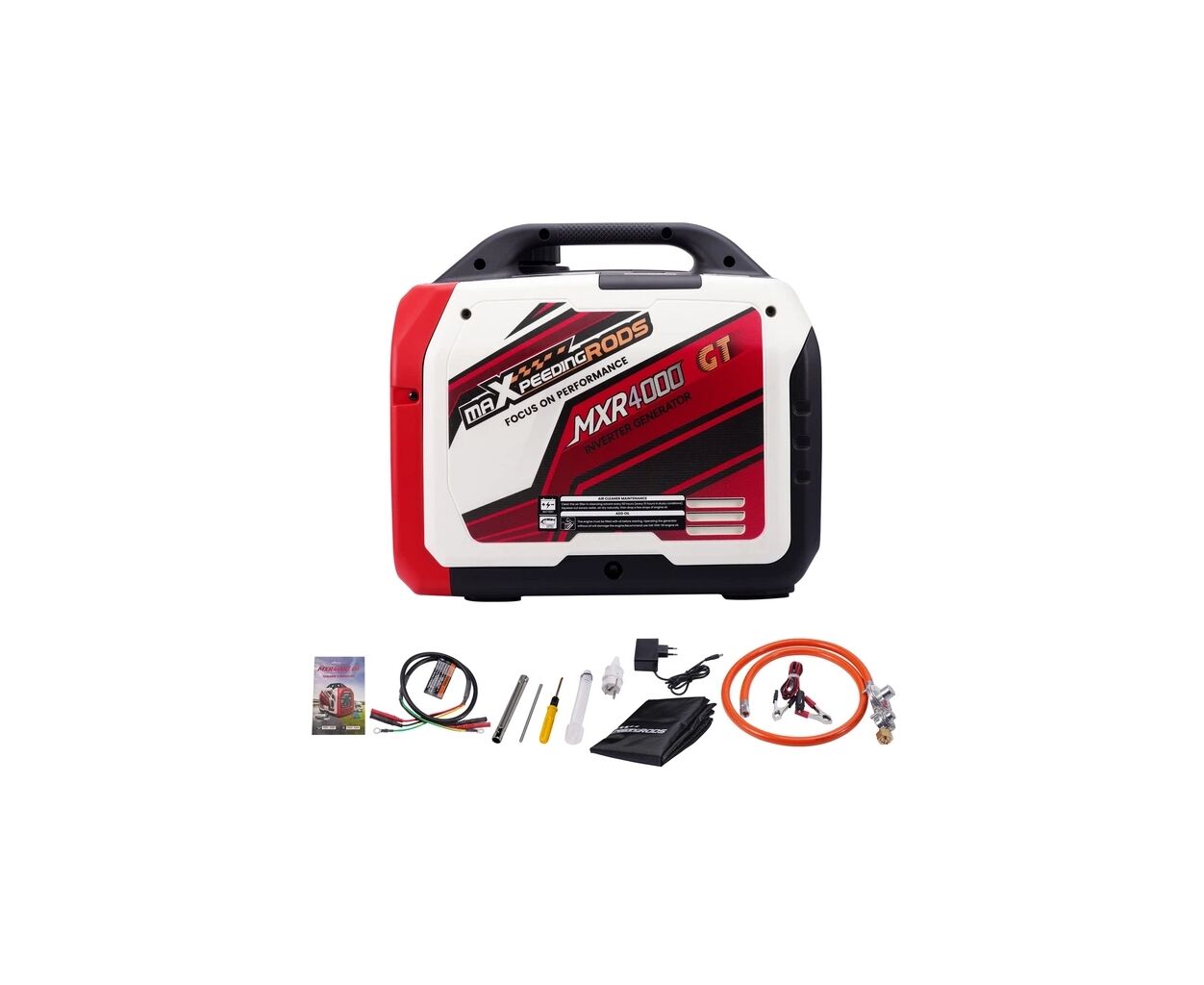 Инверторный генератор MaXpeedingRods MXR4000 GT имеет ключевое преимущество — возможность работы не только на бензине, но и на газе. Мощный двигатель выдаёт в пике 3500 Вт и способен стабильно поддерживать нагрузку 3200 Вт. Объём топливного бака достаточен для работы на бензине до 9 часов при минимальной нагрузке. При использовании газа в качестве топлива, как заявляет производитель, можно увеличить до 1000 часов непрерывной работы — всё зависит от объёма баллона с пропан-бутаном.