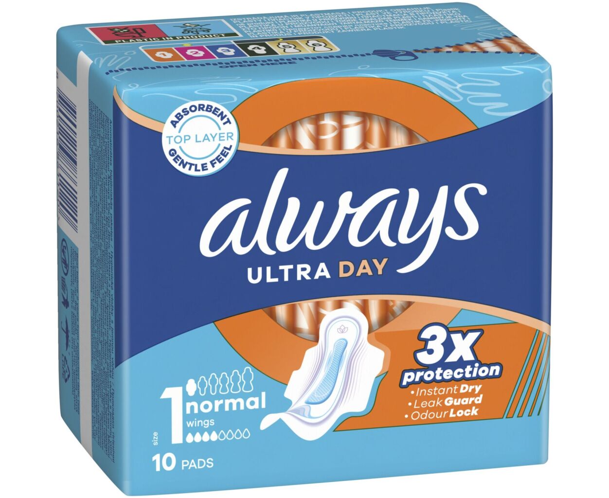 Гигиенические прокладки Always Ultra Day Normal (размер 1) обеспечивают тройную защиту — и вам не нужно соглашаться на меньшее.