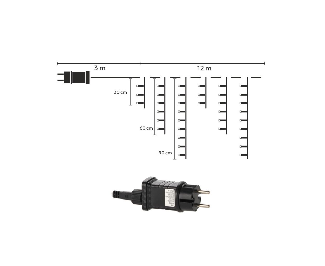 Бахрома 300 LED 12 м, холодний білий, IP44, від ме