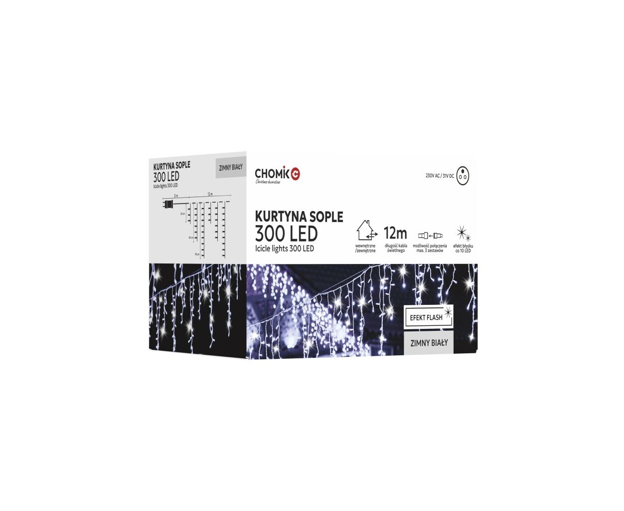 Гирлянда Chomik Бахрома 300 LED 12 м, холодний білий, IP44, від мережі (5900779879850)