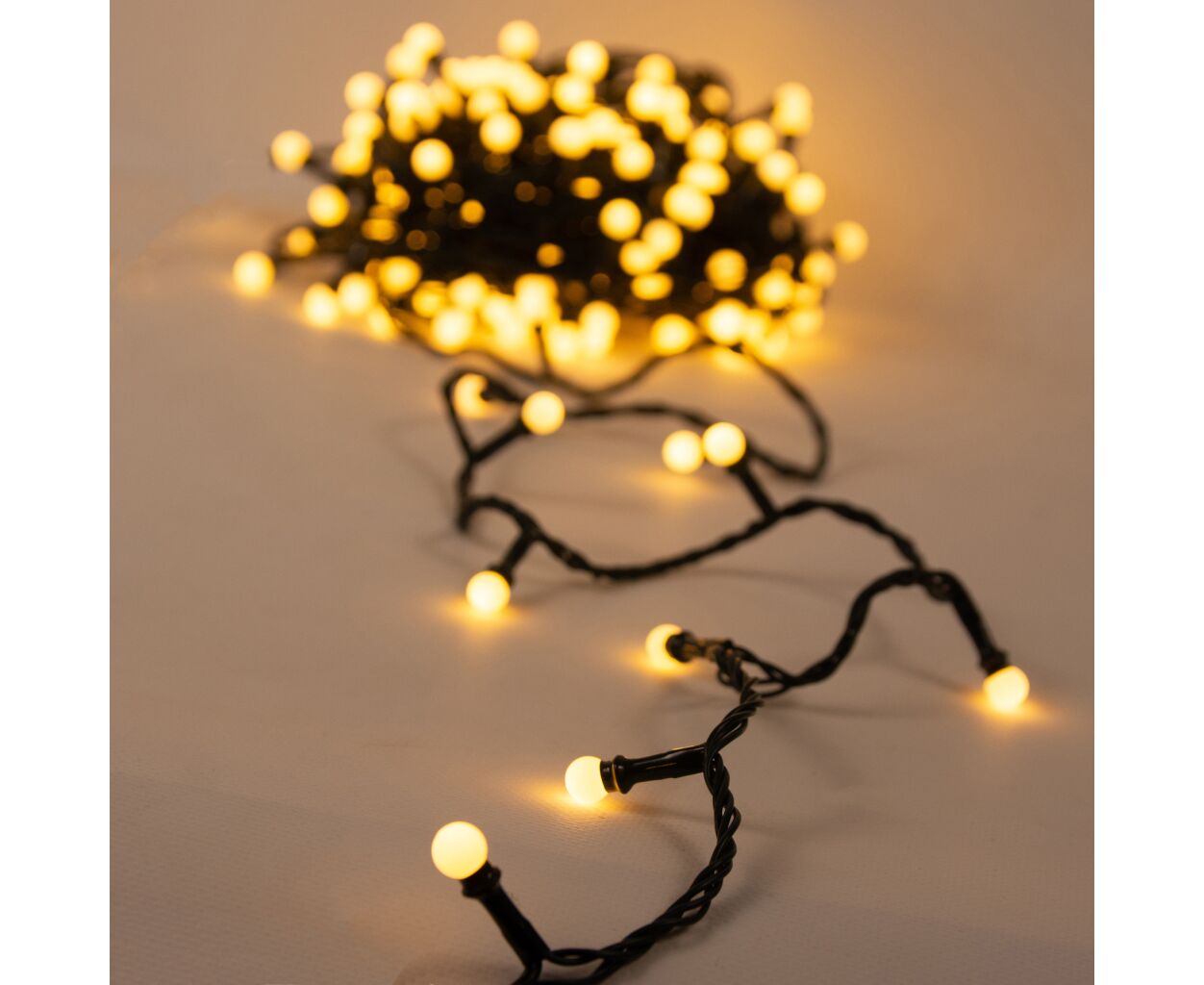 Особая форма шариков, изготовленных из качественного пластика, придает гирлянде уникальность и стиль, а теплый белый цвет свечения создает атмосферу спокойствия и комфорта. Благодаря длине 16 м, вы сможете обернуть любое помещение или украсить открытое пространство, защищенное от прямых осадков согласно классу защиты IP44.