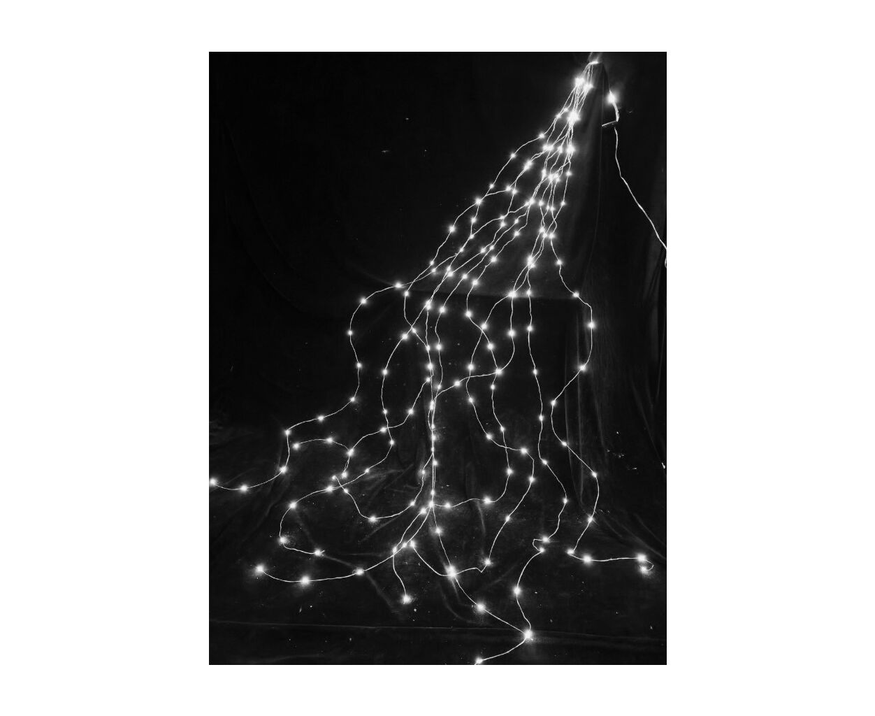 Одним из главных преимуществ этой гирлянды является уникальный дизайн в виде бахромы; это десять вертикальных струн, расположенных на горизонтальной основе длиной 10 м. Такая конструкция делает световое оформление не только эстетически привлекательным, но и практичным для декора как внутри помещений, так и на открытых террасах. Гирлянда оснащена 200 LED-лампочками, которые работают в различных динамических режимах – от нежного мерцания до интенсивных импульсов, что позволяет настроить освещение под любое настроение или мероприятие.