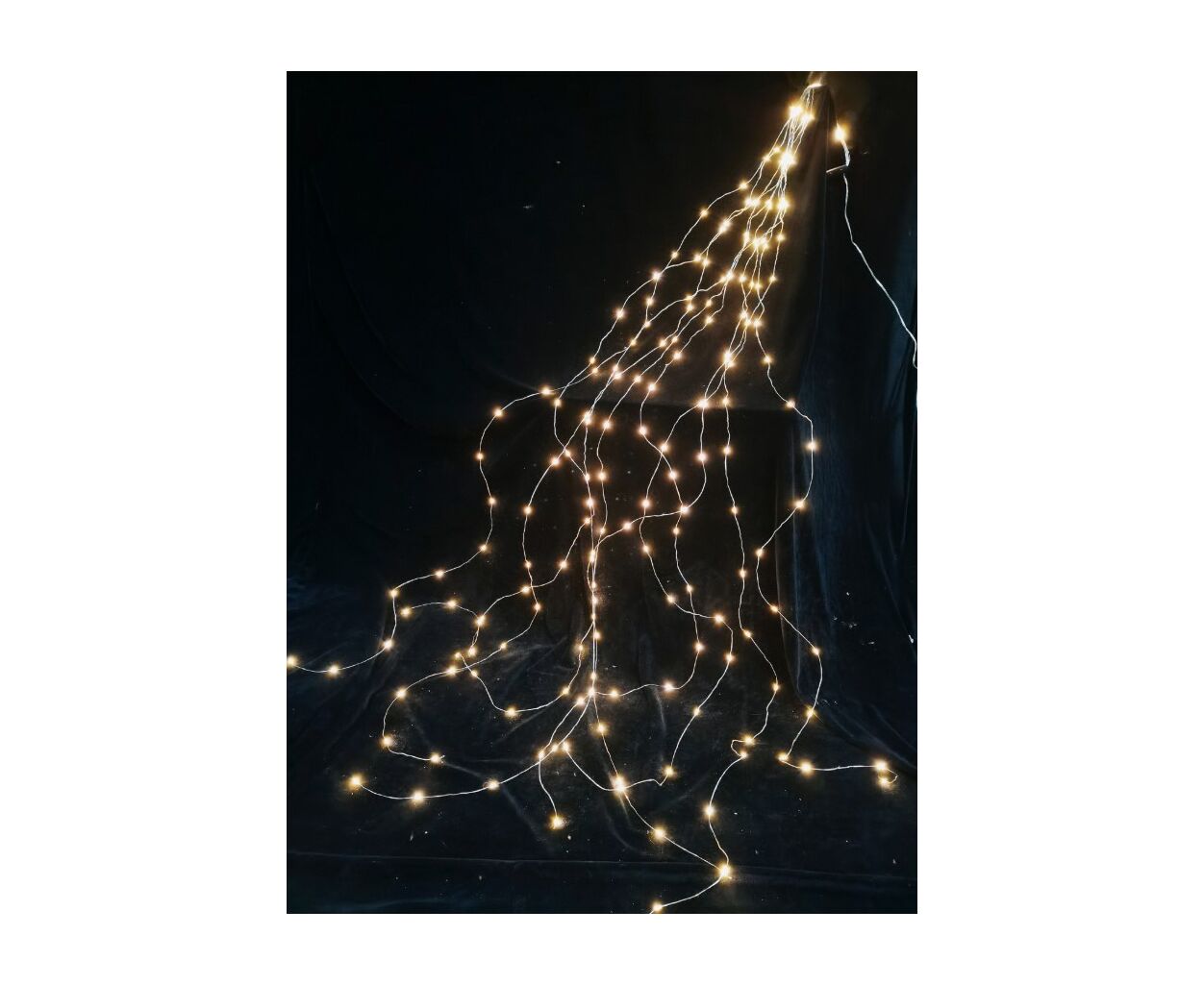 Формат "бахрома", в котором выполнена гирлянда, формирует эстетический эффект каскадного освещения. LED-лампочки равномерно распределены вдоль медного провода, который гармонично вписывается в любой интерьер или экстерьер. Серебристый цвет провода добавляет легкости и изящности конструкции, что делает её идеальной для как интерьерного, так и уличного применения.