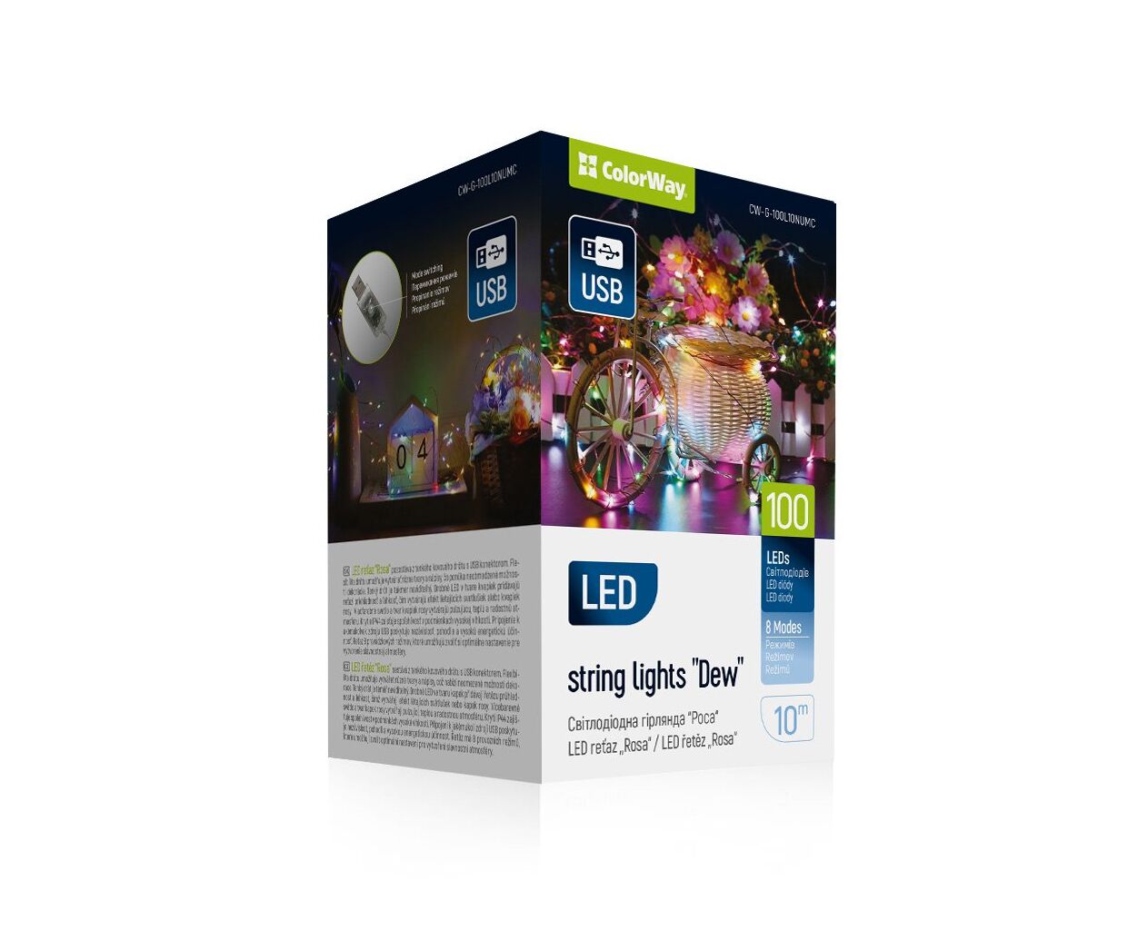 Гирлянда ColorWay Роса LED 100 10 м 8 функций разноцветная USB (CW-G-100L10NUMC)