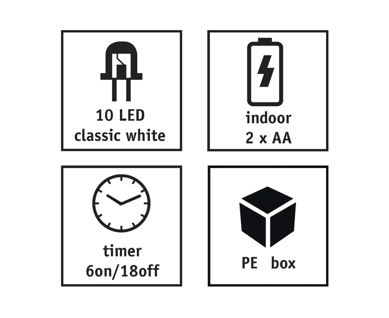 Описание Гирлянда Luca Lighting Ялинка, струна, 1,3 м, класична біла, 10 LED 2AA, таймер (8720967822867)