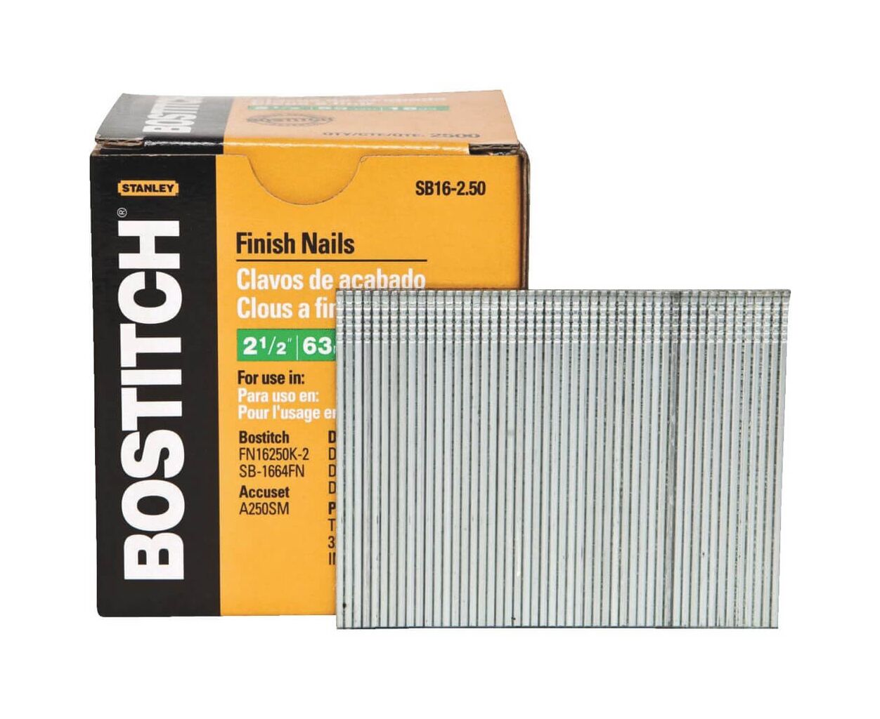 Гвозди Bostitch отделочные тип "SB16", L=65 мм, шляпка 3.0 мм, 2500 шт (SB16-2.50)