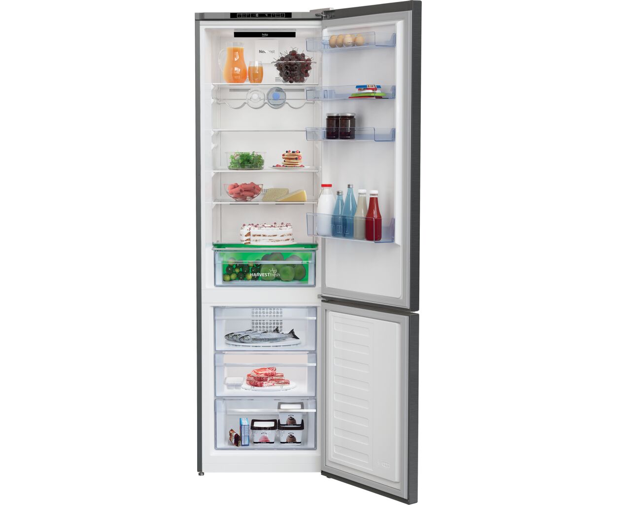 отдельностоящий, двухкамерные, Общий объем холодильника - 362 л, Система разморозки No Frost - холодильное+морозильное отделения, A+, обычный, Оснащение - форма для льда, полка для бутылок, контейнер для овощей, лоток для яиц, Полезный объем холодильной камеры - 253 л, Полки холодильной камеры - закаленное стекло (4 шт.), Полезный объем морозильной камеры - 109 л, Количество секций в морозильной камере - 3 шт, 38 дБ, 202.5 см, 59.5 см, 67 см, 76 кг, Цвет - нержавеющая сталь