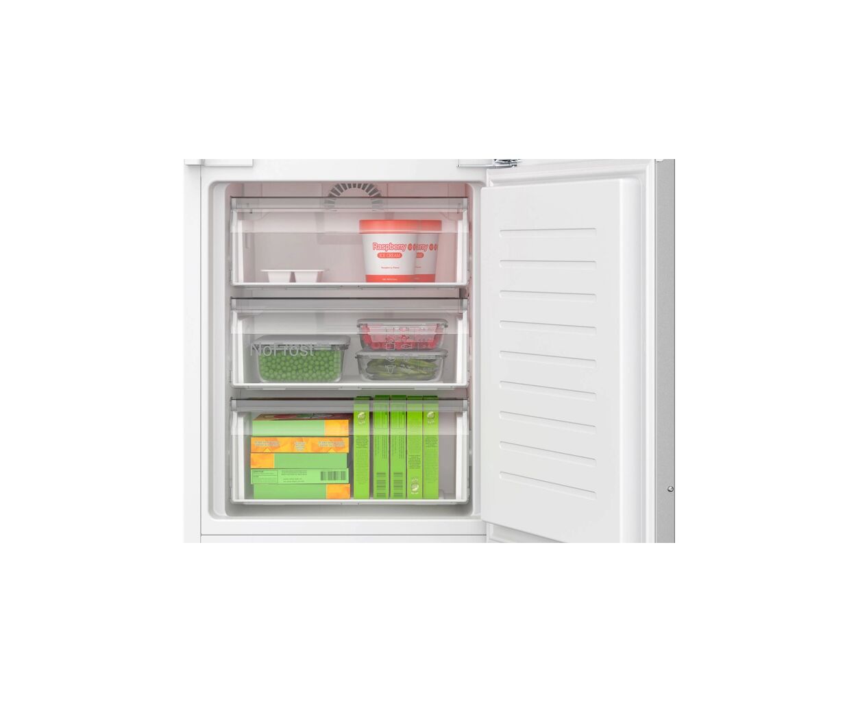 Встраиваемый холодильник Bosch Serie 4 KIN96VFD0 сочетает в себе емкость, энергоэффективность и инновационные технологии, создавая идеальные условия для длительного хранения продуктов. Общий объем 290 л обеспечивает достаточно простора для семейного использования, а компактный формат позволяет гармонично интегрировать прибор в любую кухню. Благодаря низкому уровню шума всего 34 дБ, холодильник работает почти бесшумно, создавая комфорт даже в открытых жилых пространствах.