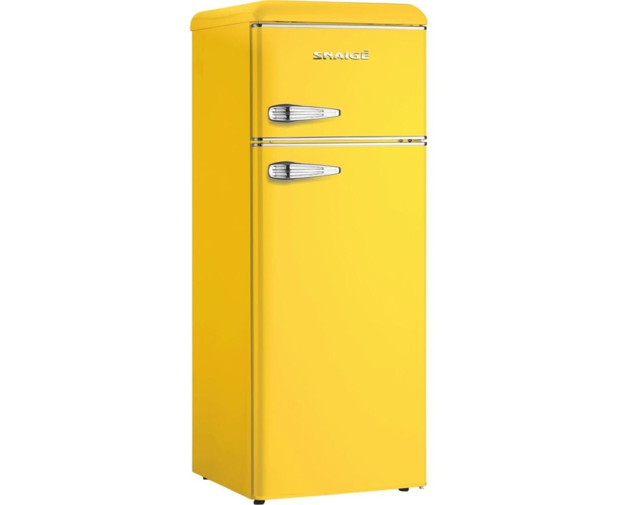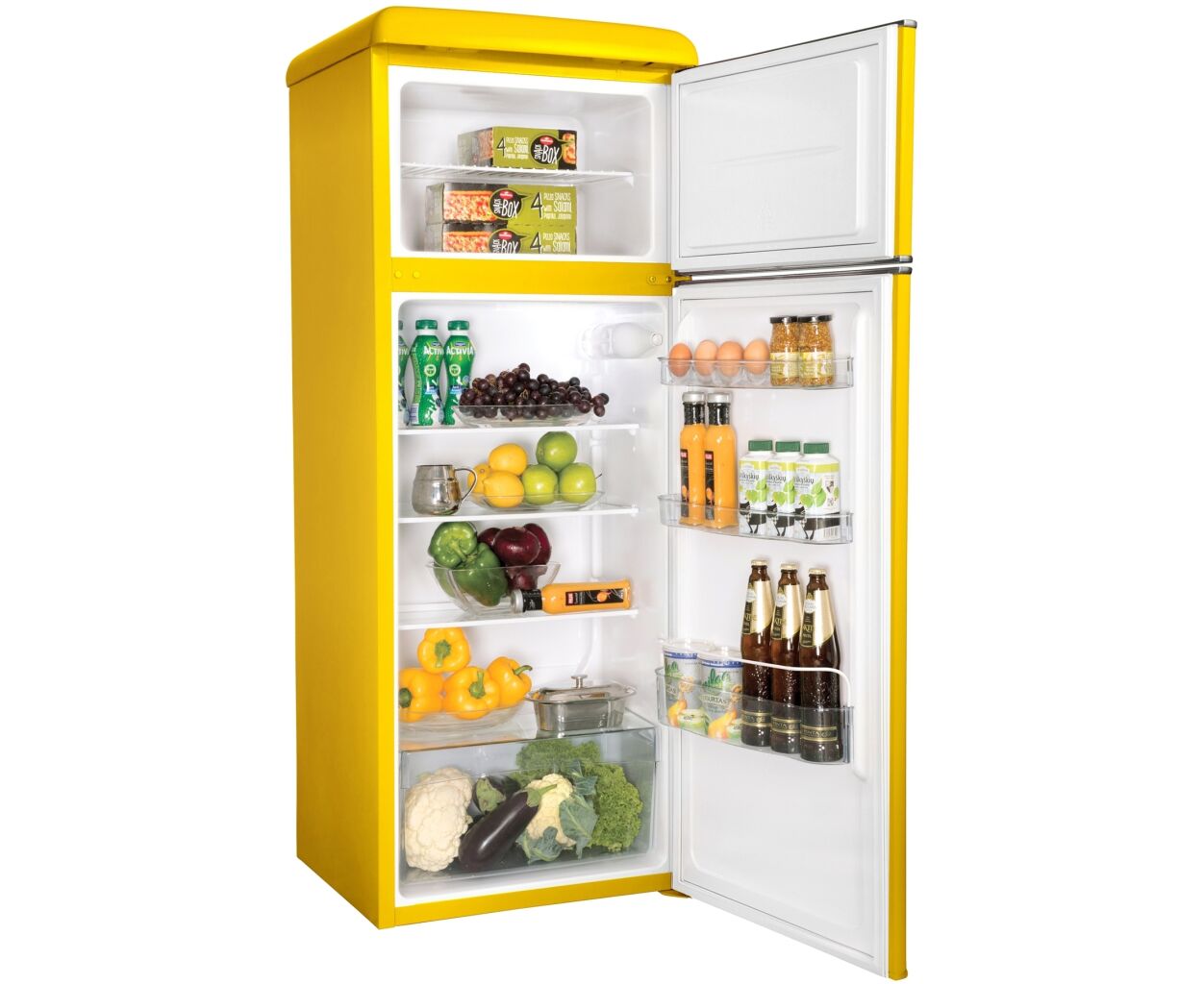 отдельностоящий, двухкамерные, Общий объем холодильника - 212 л, A++, обычный, Оснащение - контейнер для овощей, лоток для яиц, Полезный объем холодильной камеры - 166 л, Полки холодильной камеры - закаленное стекло (4 шт.), Полезный объем морозильной камеры - 46 л, Количество секций в морозильной камере - 2 шт, 39 дБ, 147.5 см, 56 см, 63 см, 45 кг, Цвет - желтый