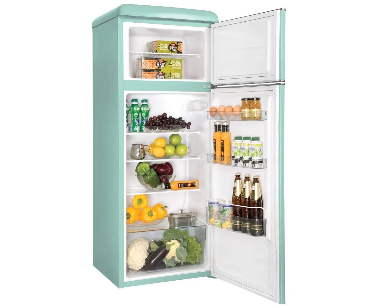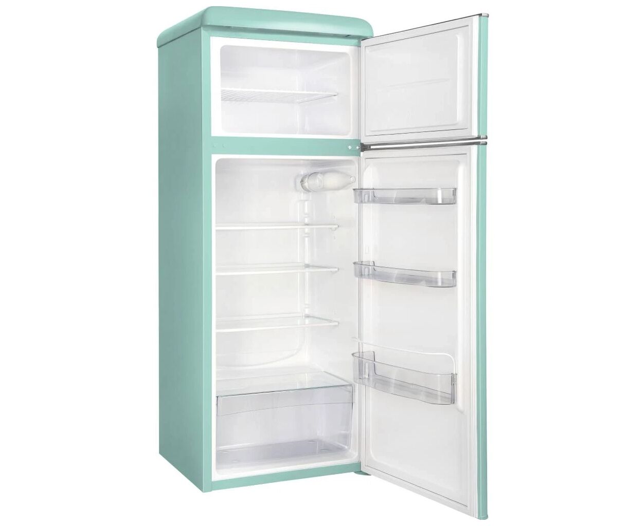отдельностоящий, двухкамерные, Общий объем холодильника - 212 л, A++, обычный, Оснащение - контейнер для овощей, лоток для яиц, Полезный объем холодильной камеры - 166 л, Полки холодильной камеры - закаленное стекло (4 шт.), Полезный объем морозильной камеры - 46 л, Количество секций в морозильной камере - 2 шт, 39 дБ, 147.5 см, 56 см, 63 см, 45 кг, Цвет - бирюзовый