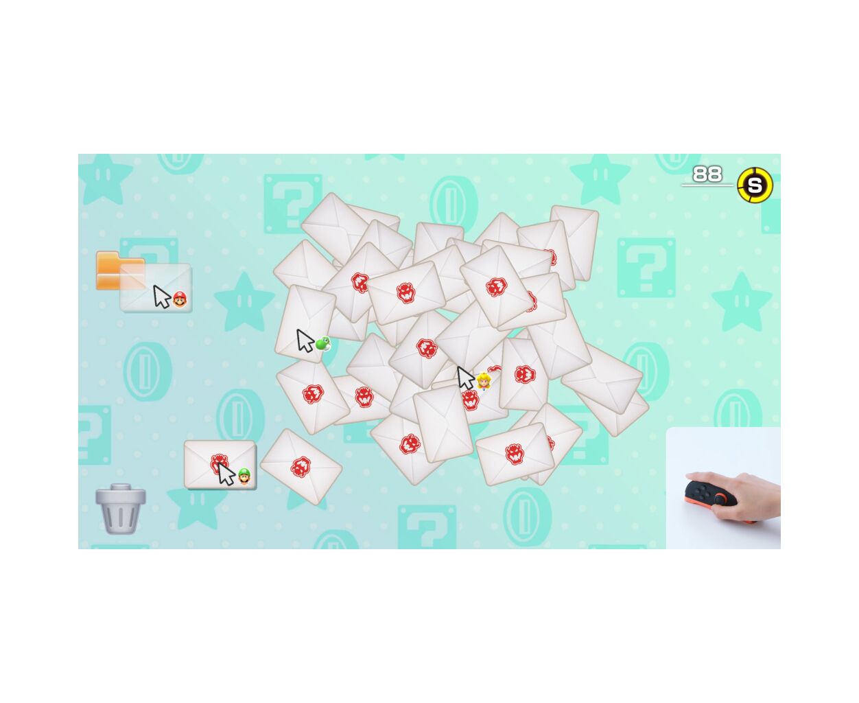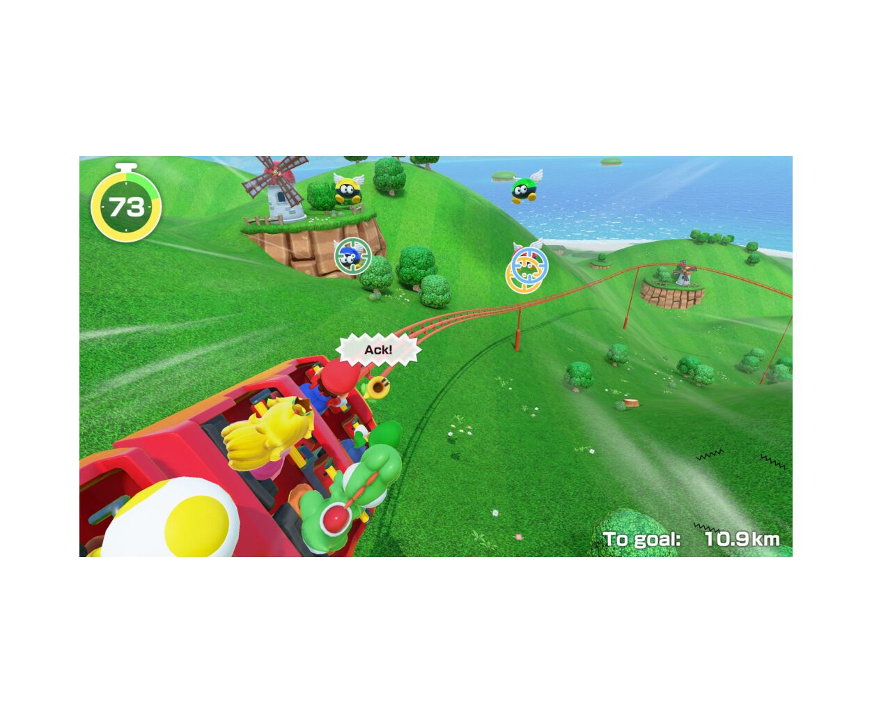 Соединитесь и отправляйтесь на эту кооперативную подставку! Пройдя сквозь трубу, используйте мышку Joy-Con 2, чтобы целиться в летающих злодеев и сбивать их. Работайте вместе, чтобы улучшить результат!
