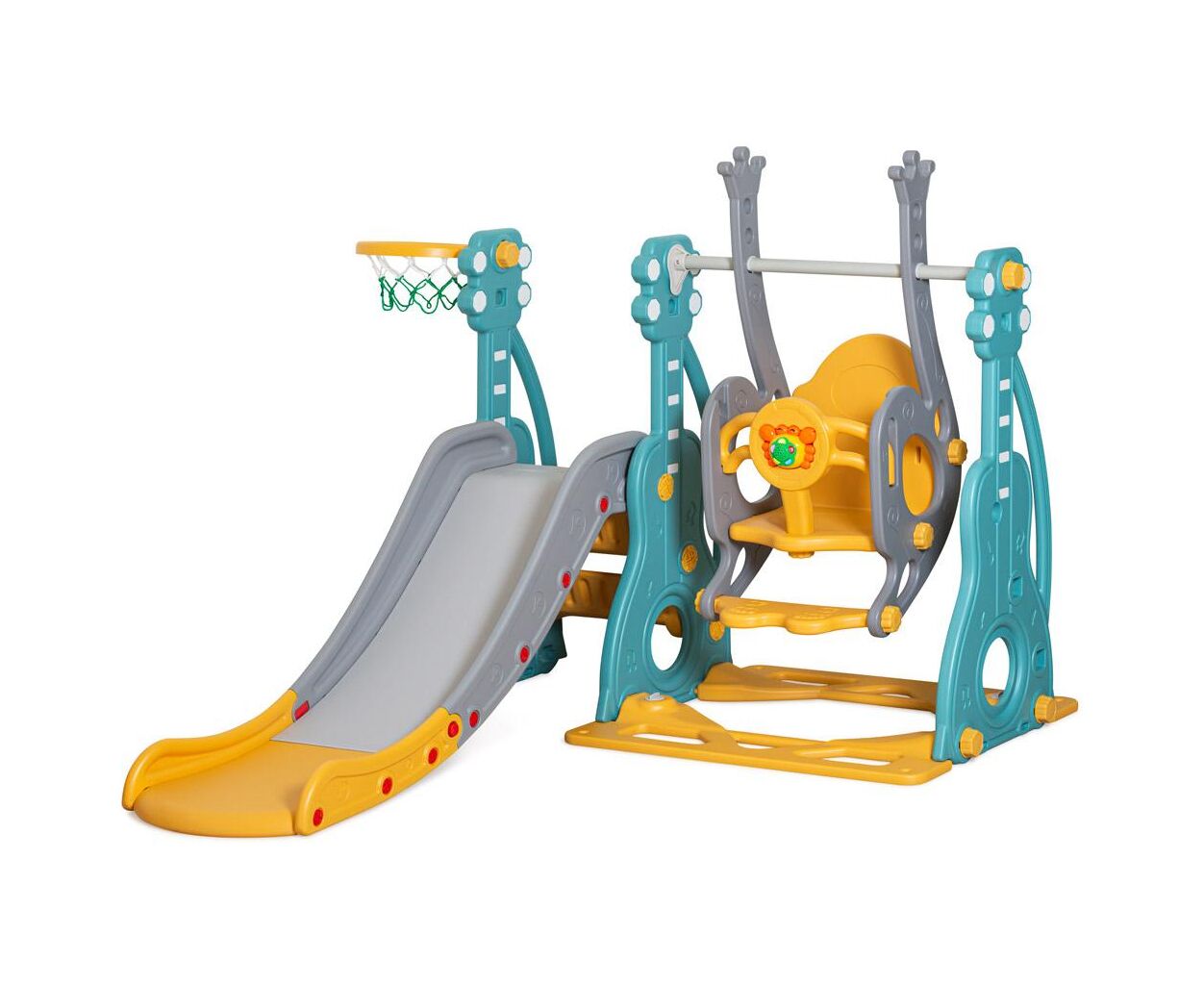 Возрастная категория - от 3-х лет, Материал - пластик, размеры - 135 х 121 х 102-114 см, цвет - синий, желтый, серый
