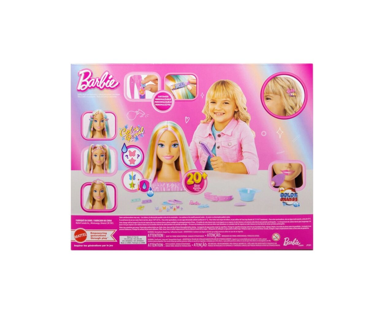 Характеристики Игровой набор Barbie Кукла-манекен для причесок "Цветовое перевоплощение" Barbie с аксессуарами (JFG81)