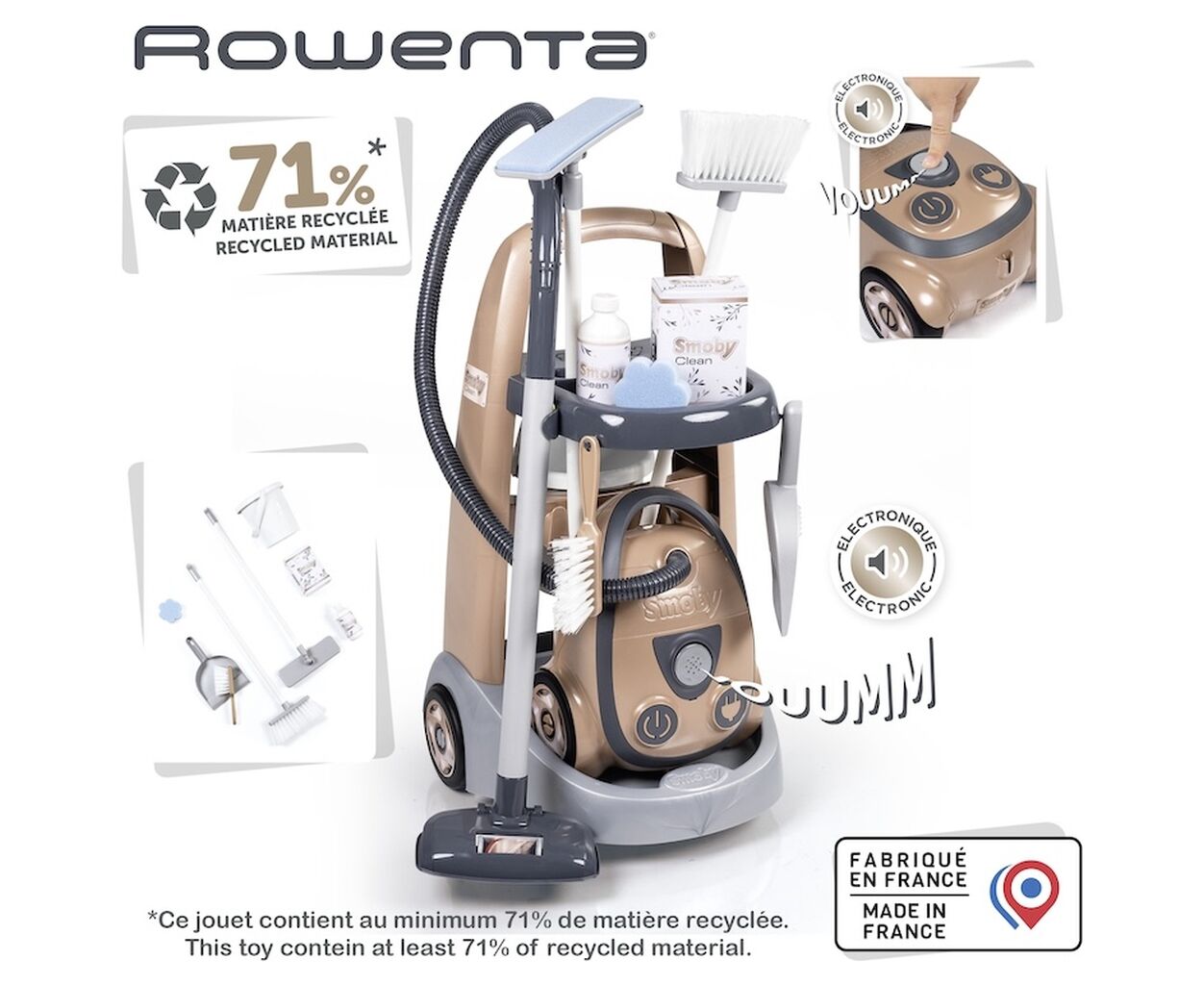 Описание Игровой набор Smoby Тележка для уборки Ровента с пылесосом (7600330325)