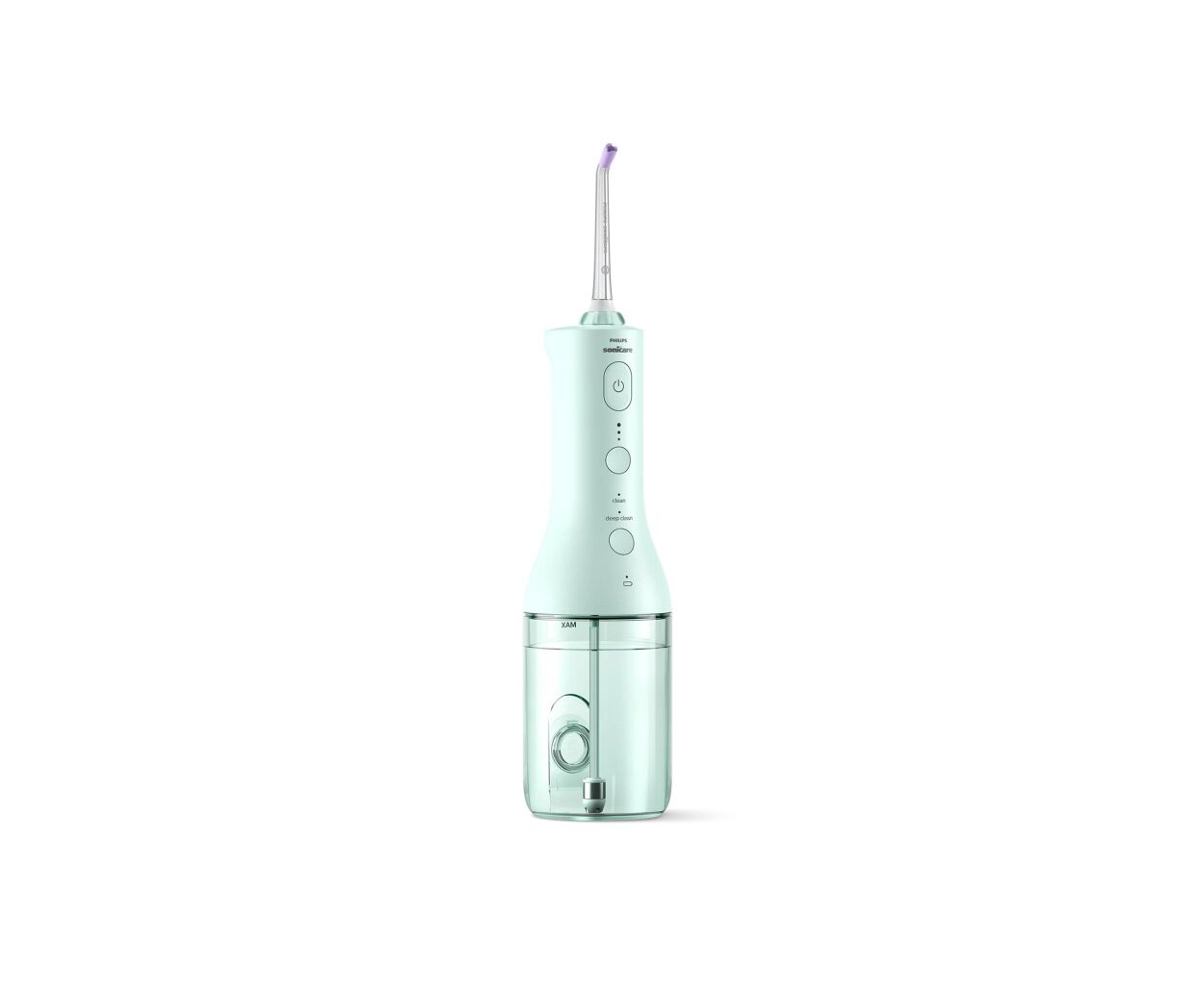 Портативный ирригатор с емкостью 250 мл всегда поможет позаботиться о гигиене полости рта. Просто открутите резервуар, снимите и наполните его водой или используйте боковой клапан для легкого наполнения водой.