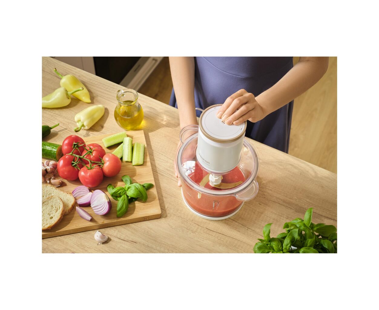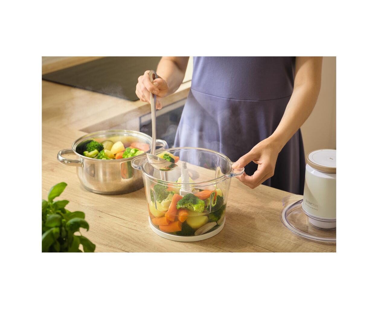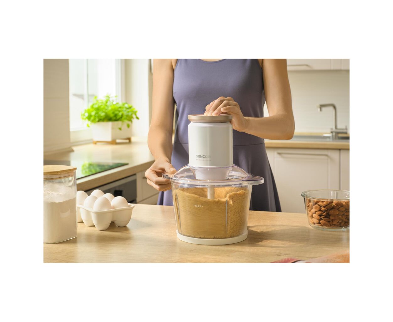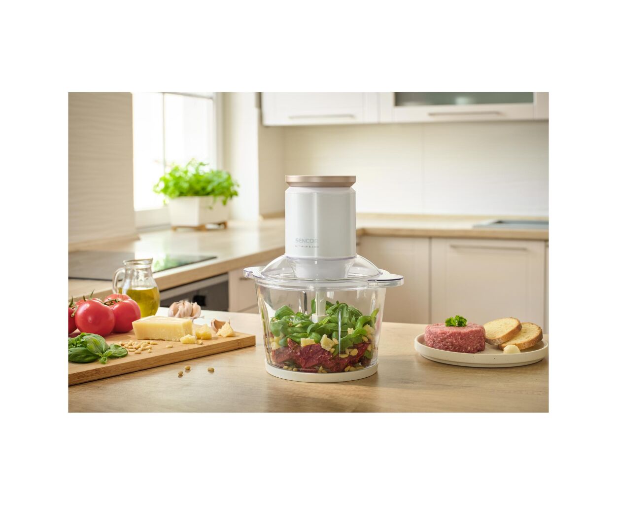 Измельчитель Sencor SCB7000WH легко управляется, быстро очищается и станет надежным помощником в приготовлении соусов, паштетов, пюре, измельченных овощей и мяса, делая кухонные задания простыми и приятными.