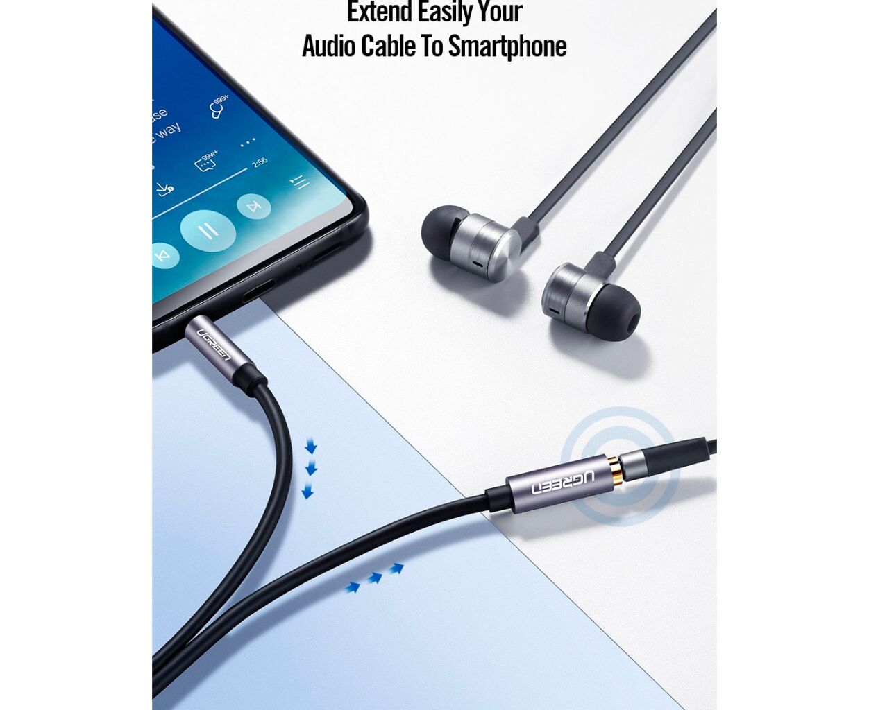 Кабель мультимедийный 3.5mm M to 3.5mm F 1.5m AV118 gray Ugreen (10593)
