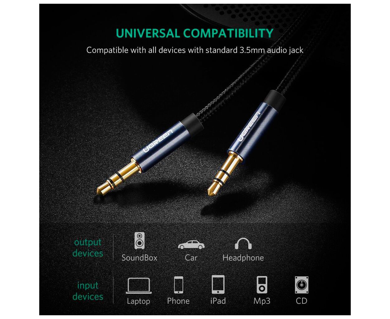 Отзывы о Кабель мультимедийный 3.5mm M to 3.5mm M 0.5m 90° corner AV112 blue Ugreen (60178) от реальных покупателей
