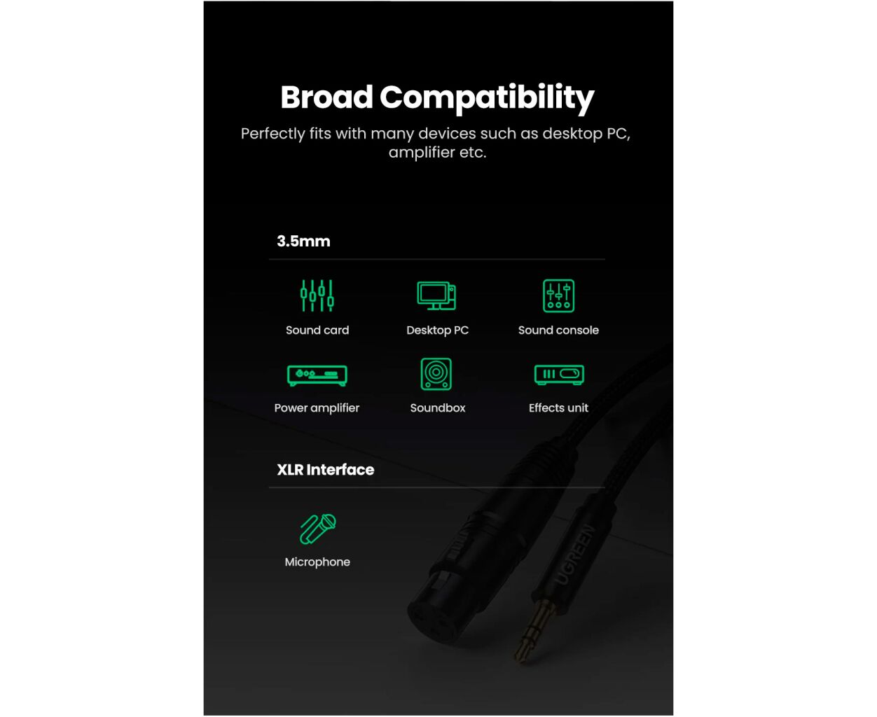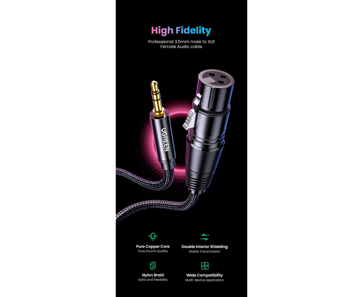 Описание Кабель мультимедийный 3.5mm M to XLR F 1.0m AV182 black Ugreen (20763)