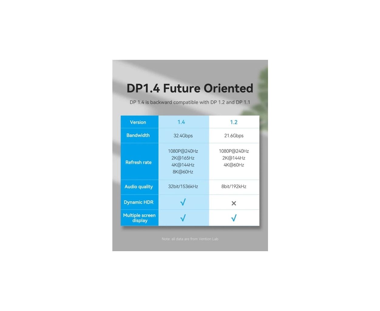 Цифровой кабель DisplayPort 1.4 для подключения источника видео и устройства отображения. Идеально подходит для передачи высокого разрешения 8K Ultra HD (7680x4320 при 60 Гц) и имеет емкость до 32.4 Гбит / с, а также поддерживает более 32 аудиоканалов. Кабель позволяет переключать устройства с помощью разъема DisplayPort. Как правило, кабель необходим для подключения дисплея к вашему компьютеру или аудио и видео оборудования с современным интерфейсом Displayport. Поддержка: 8K 60 Гц / 4K 144 Гц / 2K 165 Гц / 1080p 240 Гц / динамический HDR / PLCM / AC-3 / DTS и другие аудиоформаты