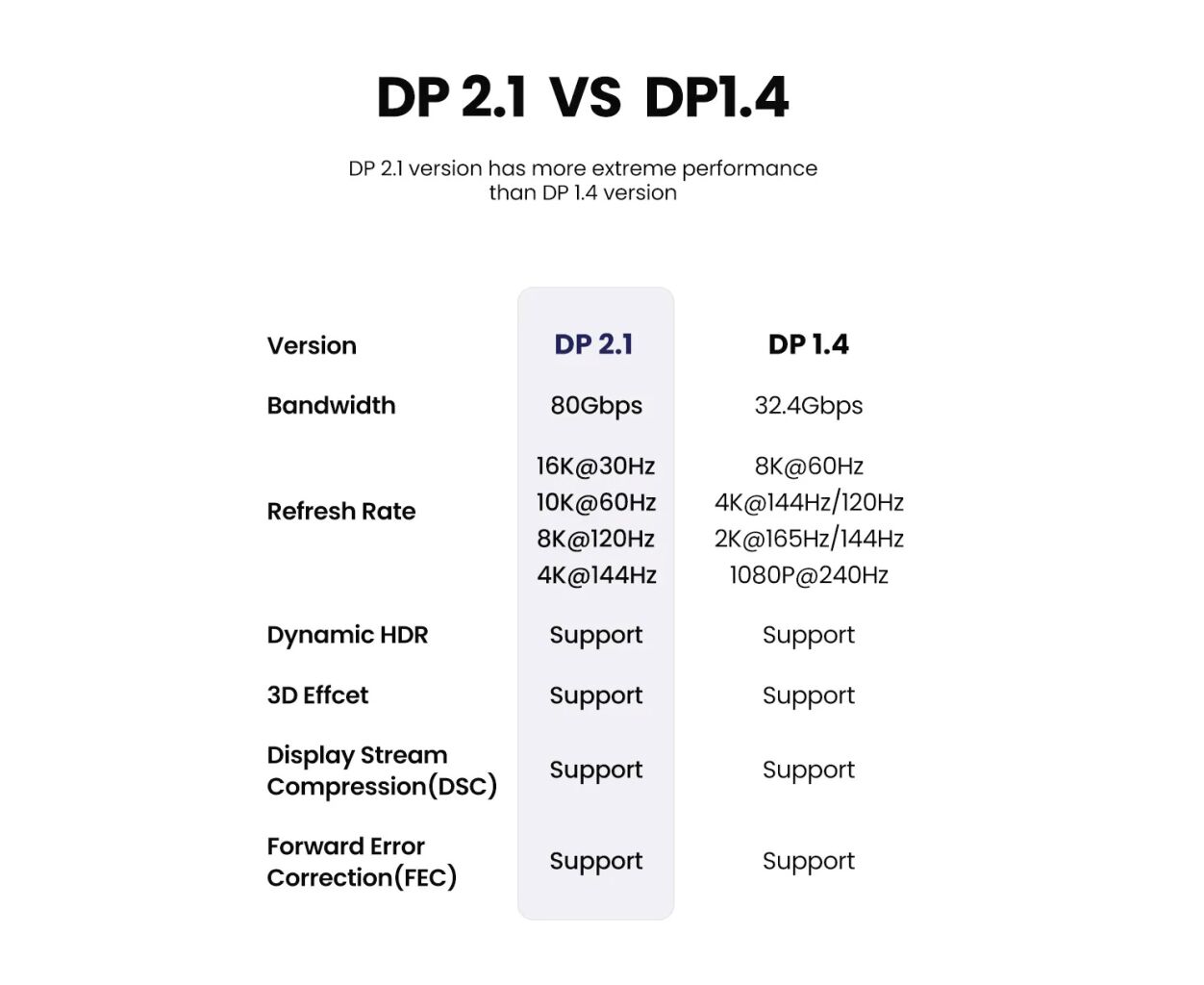 Описание Кабель мультимедийный DisplayPort M to DisplayPort M 3.0m 16K DP118 black Ugreen (25862)