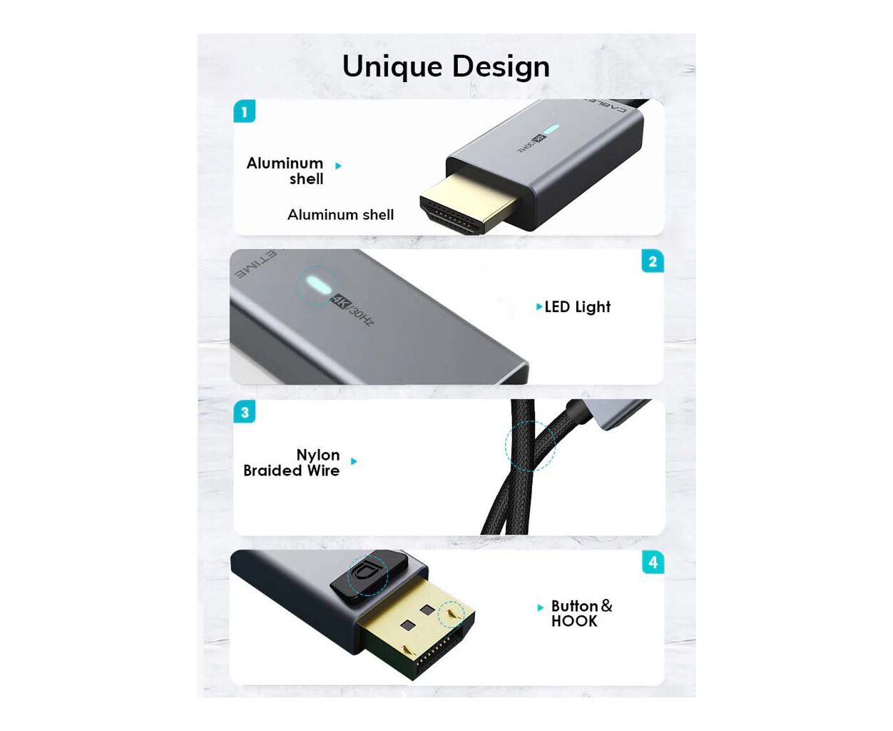 Характеристики Кабель мультимедийный DisplayPort M to HDMI M 1.8m 4K30Hz Cabletime (CA915323)