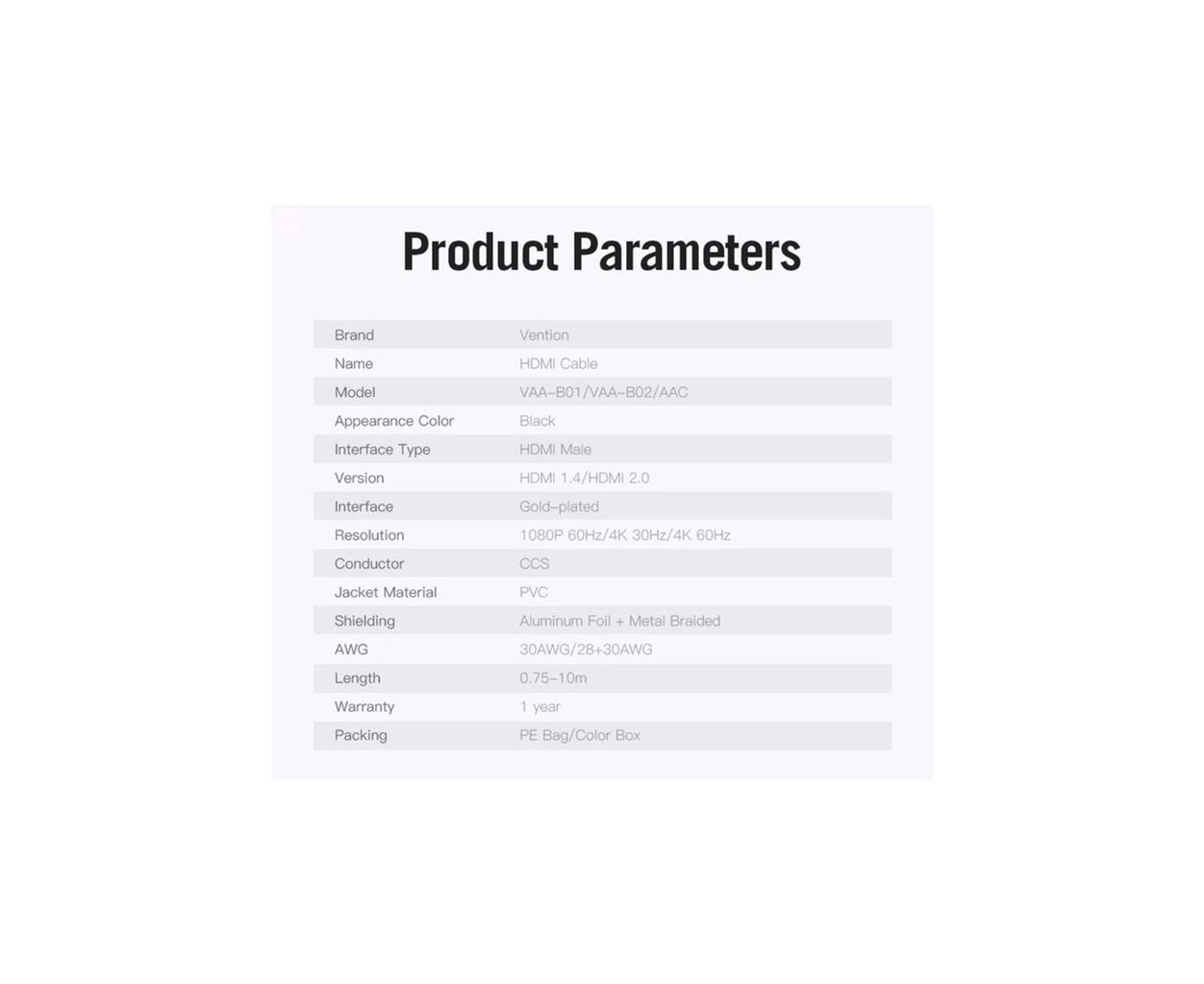 Характеристики Кабель мультимедийный HDMI M to HDMI M 1.5m black Vention (AACBG)