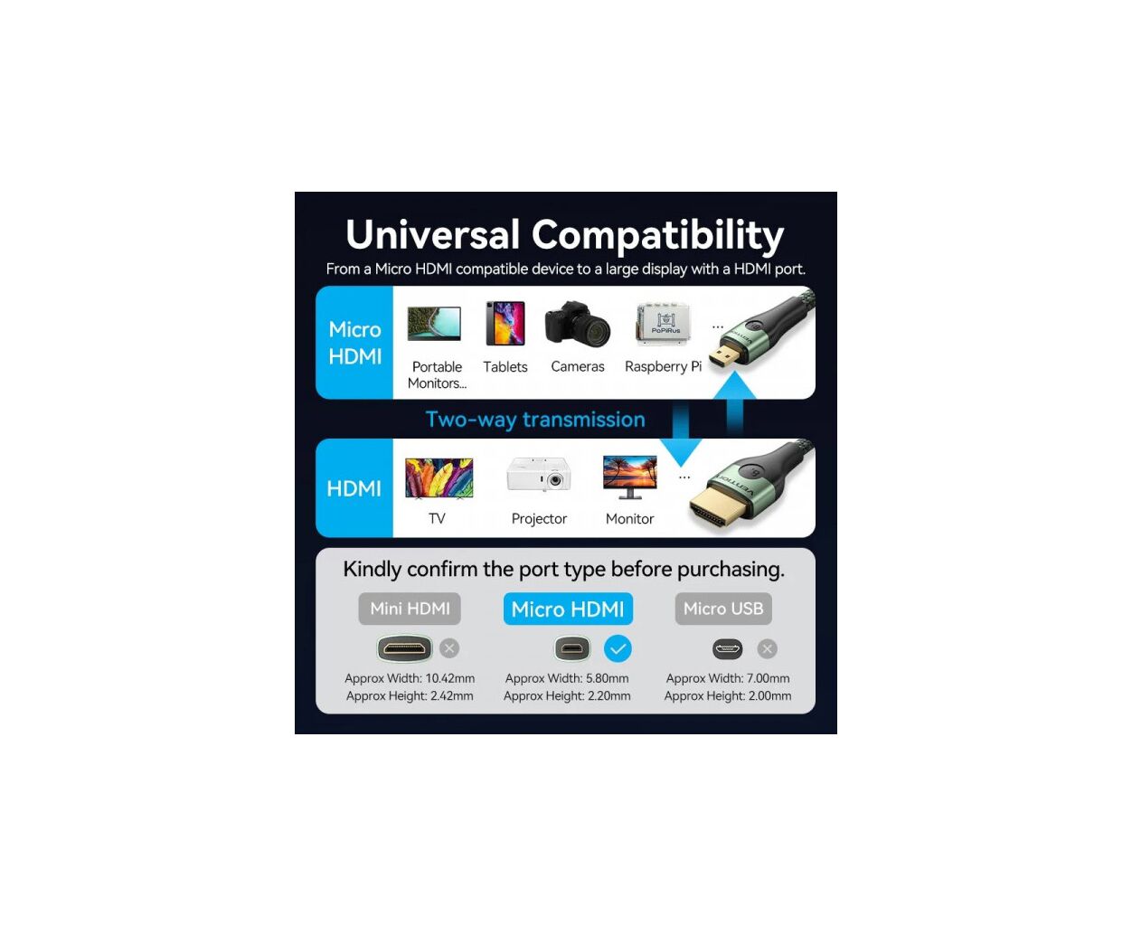 HDMI M to HDMI micro M 2.1m V2.0 8K 60Hz green
