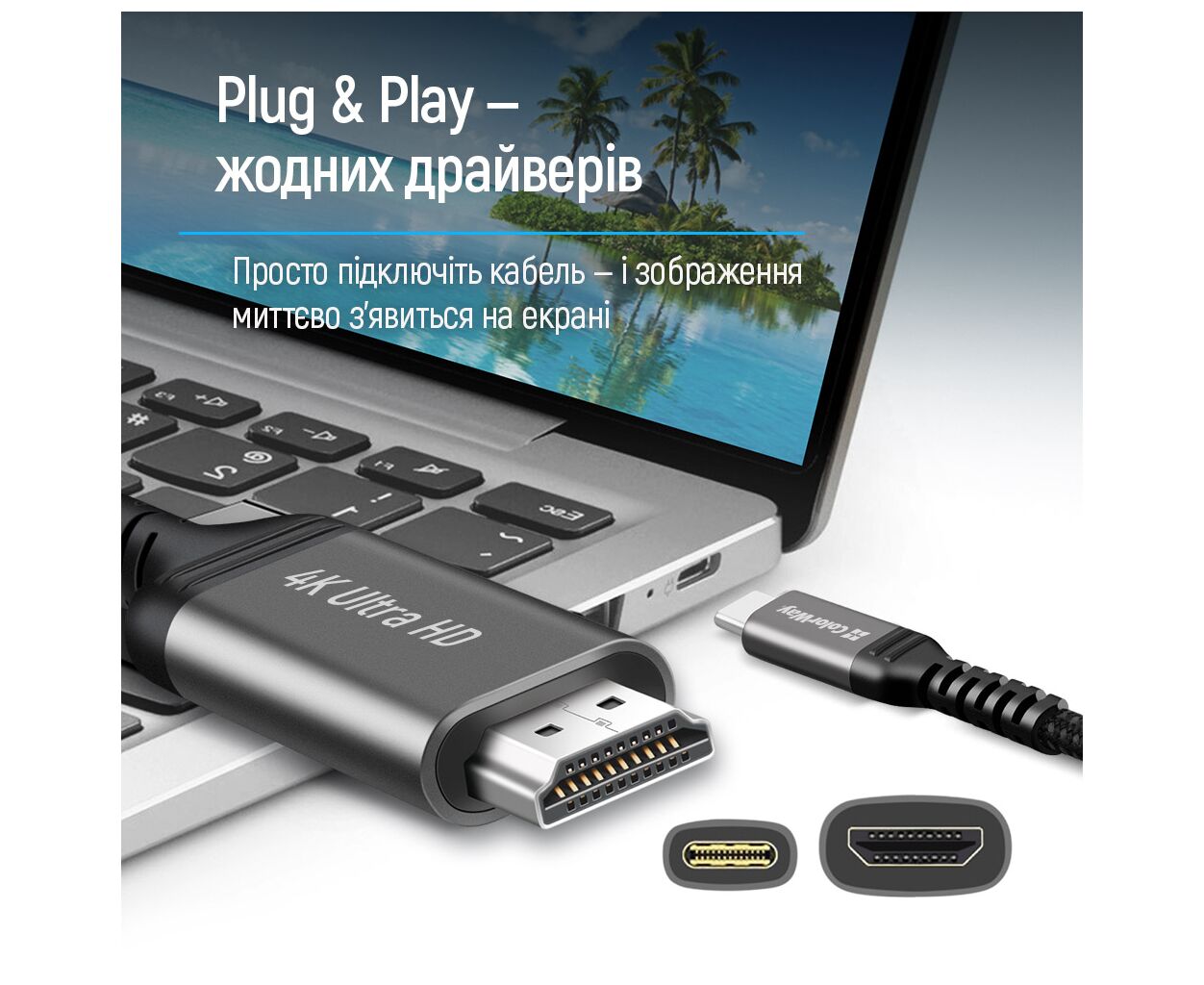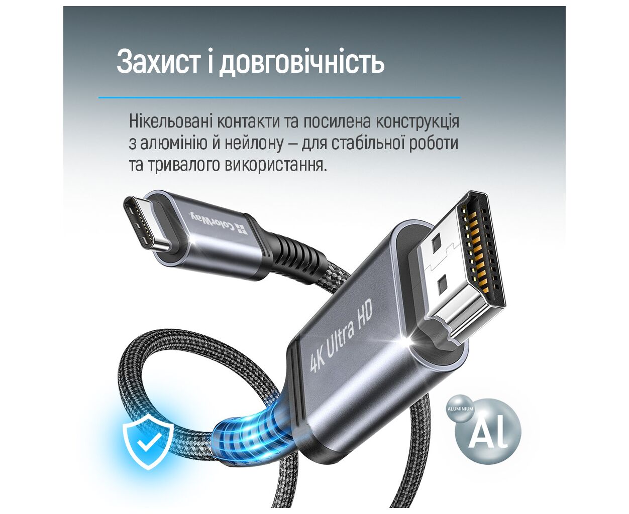 Описание Кабель мультимедийный USB-C to HDMI M 2.0m 4K60Hz black ColorWay (CW-CBCHD077-BK)