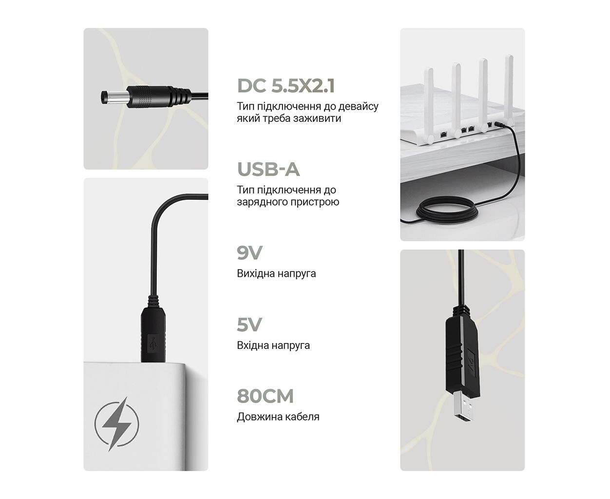 Кабель питания ArmorStandart USB - DC 5.5x2.1 9V помогает при выключении электричества запитать роутер от повербанка и продолжать пользоваться интернетом (если провайдер продолжает подавать интернет к роутеру).