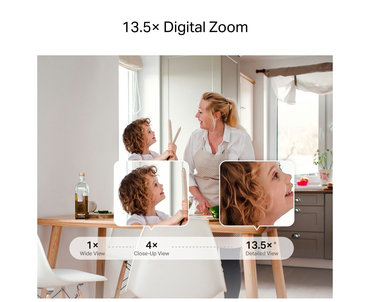 От каждого угла до каждой деталиНаслаждайтесь 360° обзором вашего дома в потрясающей четкости 3K. От широкого охвата до деталей крупным планом с 13,5-кратным цифровым зумом — каждый угол будет кристально четким.