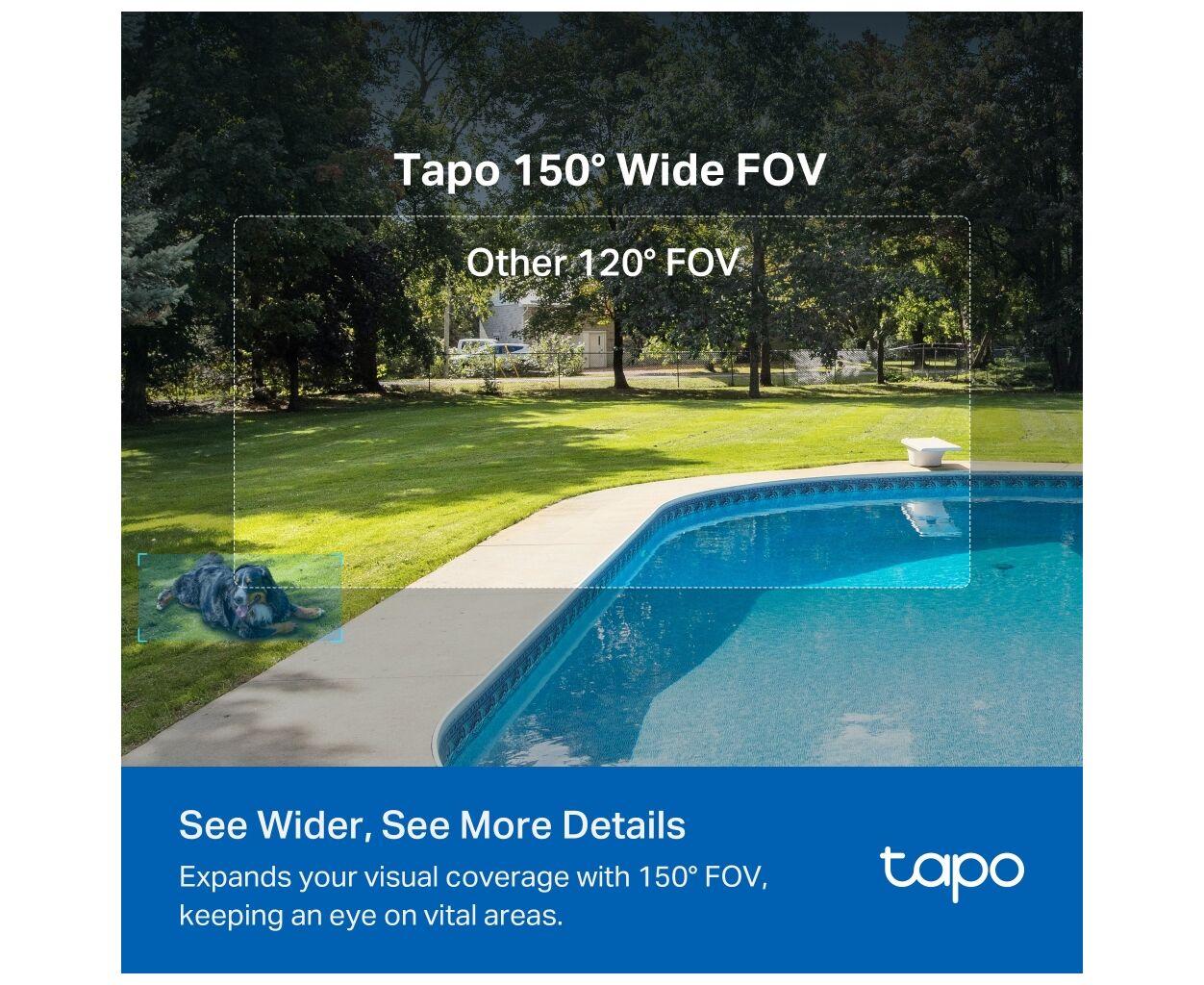 Tapo C425 расширяет ваш визуальный охват благодаря сверхширокому полю зрения 142°, позволяя вам следить за более важными областями.